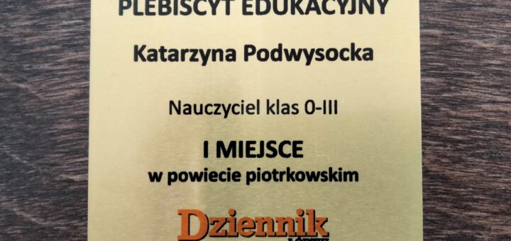 Miło nam poinformować, że p. Katarzyna Podwysocka zajęła I miejsce w powiecie piotrkowskim (w kategorii „Nauczyciel klas 0-III”) w ramach Plebiscytu Edukacyjnego Dziennika Łódzkiego. Serdecznie...