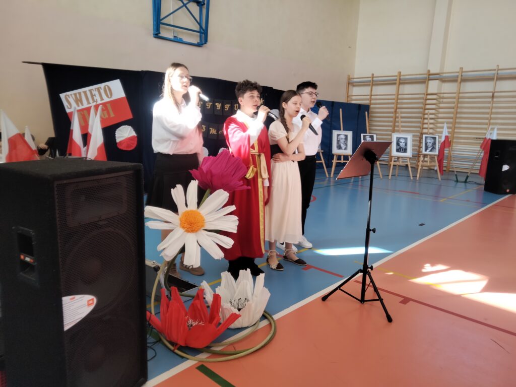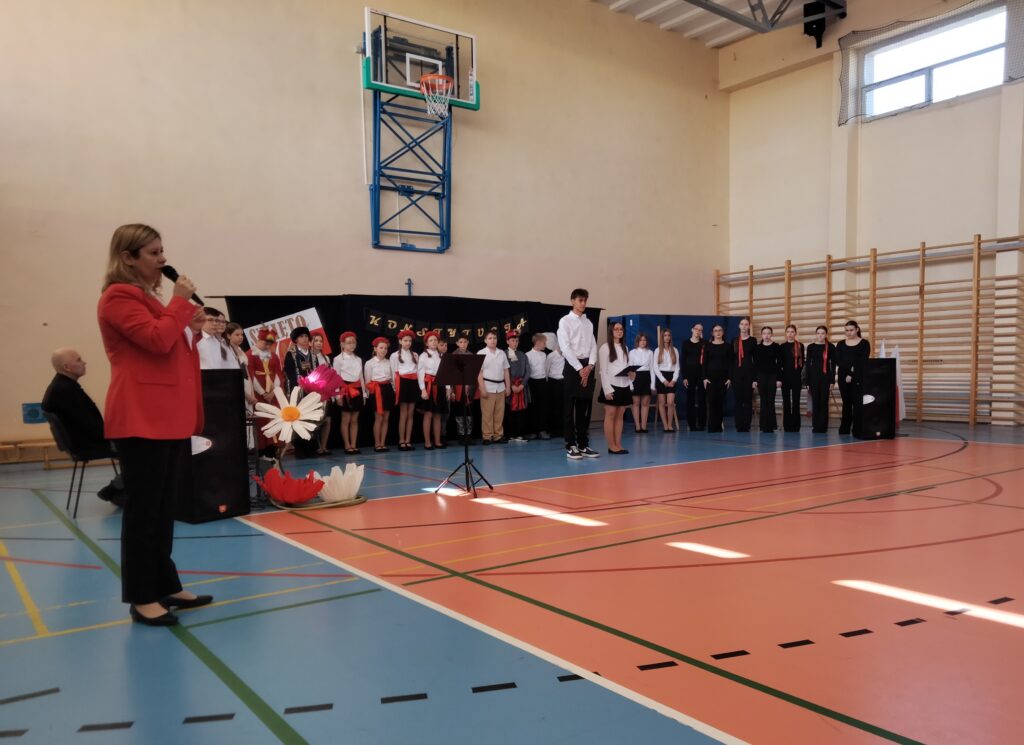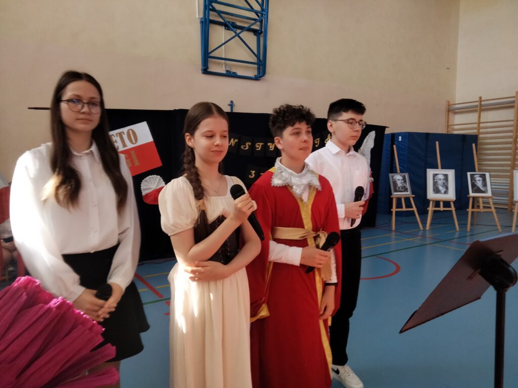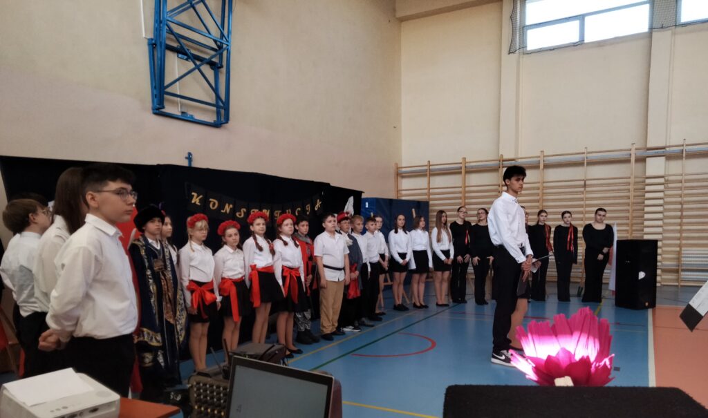 Uczniowie pod okiem organizatorek – p. Aleksandry Kowalczyk oraz p. Katarzyny Stawiak, z dużym zaangażowaniem przygotowali część artystyczną – nie zabrakło wierszy, pieśni patriotycznych oraz inscenizacji nawiązujących do wydarzeń historycznych związanych z uchwaleniem Konstytucji 3 Maja. Szczególnym elementem uroczystości był występ taneczny, który wzbogacił program i spotkał się z entuzjastycznym odbiorem publiczności.