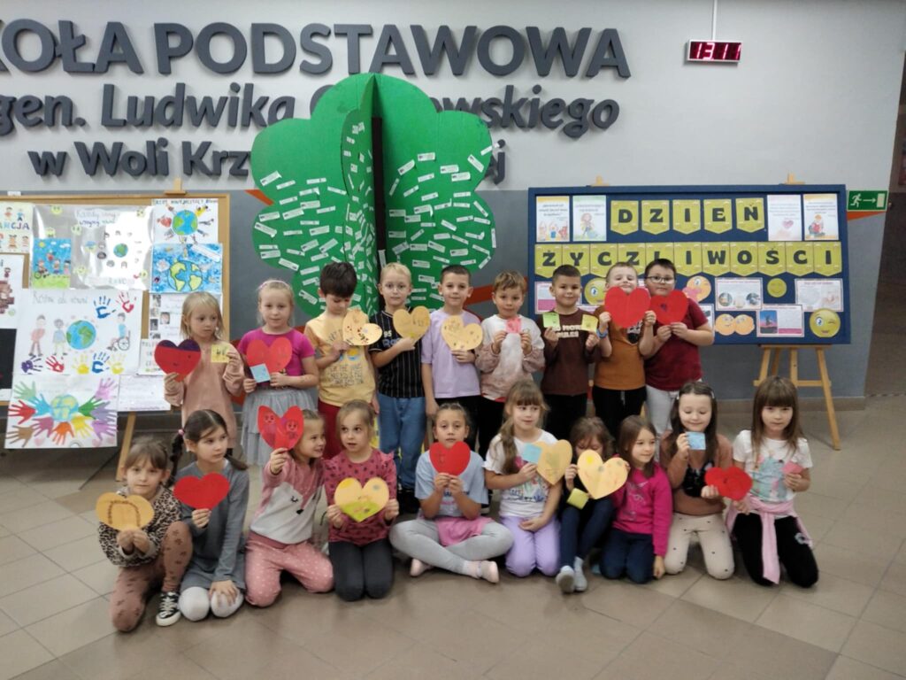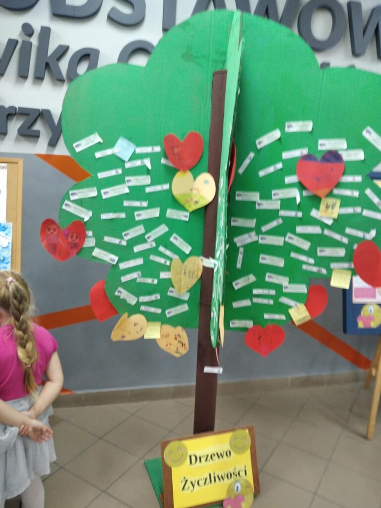 21 listopada obchodziliśmy w naszej szkole Światowy Dzień Życzliwości, który służy promowaniu idei pokoju na całym świecie, poprzez okazywanie przyjaznych emocji. Dzień Życzliwości to wspaniały moment do przypomnienia, jak wiele w naszych codziennych relacjach znaczą proste słowa: proszę, dziękuję, przepraszam, dzień dobry, miłego dnia, a także jak cudowną i ciepłą atmosferę wprowadza serdeczny uśmiech na twarzy. Te gesty sprawiają, że czujemy radość i zacieśniamy więzi między ludźmi. Świętowanie tegorocznego Dnia Życzliwości rozpoczęliśmy od samego rana. Na głównym korytarzu została przygotowana gazetka z cytatami, myślami na temat serdeczności, przyjaźni i życzliwości. Na drzwiach wszystkich klas zostały wcześniej przyklejone karteczki z miłymi słowami, które można było przenieść na Drzewo Życzliwości, które „wyrosło” na szkolnym korytarzu lub komuś je podarować. Młodsi uczniowie na świetlicy szkolnej wykonali serduszka życzliwości i zamieścili je na drzewie. Dzień Życzliwości utwierdził nas w przekonaniu, że warto być serdeczną osobą na co dzień. Pamiętajmy, że bycie życzliwym i uprzejmym nic nie kosztuje, a sprawia wiele radości i uśmiechu nie tylko nam, ale i osobom przebywającym w naszym towarzystwie. Okazana serdeczność i wzajemne ciepło są dobre na wszystko, a pozytywna energia, którą przekazujemy do nas wraca. Pamiętajmy, aby życzliwość w naszym życiu była obecna codziennie, a nie tylko od święta.