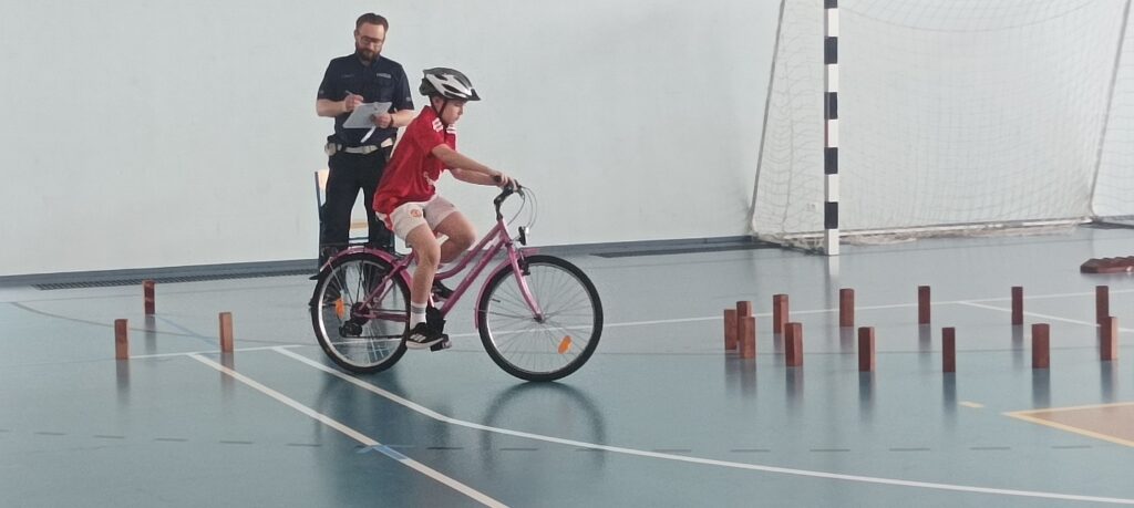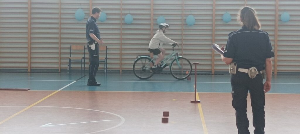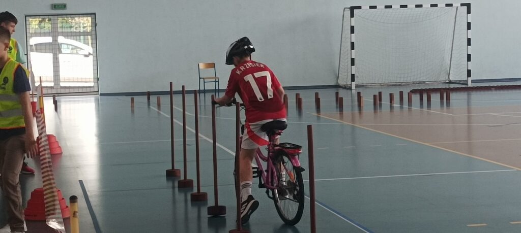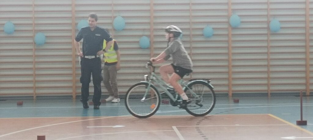 Nasi uczniowie musieli wykazać się wiedzą teoretyczną z zakresu przepisów ruchu drogowego, na którą składał się test z 25 pytań oraz test z 10 pytań dotyczących zasad przejazdu przez skrzyżowanie.