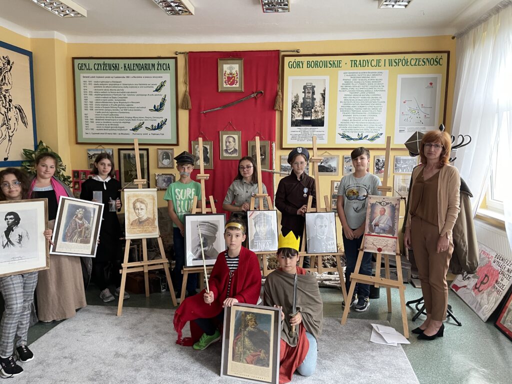 Projekt realizowany był od marca 2022 r., brali w nim udział uczniowie klas 4a i 4b, uczestniczący w zajęciach kształtujących kreatywność z historii. Pod kierunkiem nauczyciela historii – p. Katarzyny Stawiak przygotowywali referaty i prezentacje o ważnych dla polskiej historii postaciach. Zdobywali wiedzę, oceniali dorobek, a także kształtowali własne opinie na ich temat. W ramach podsumowania, każdy z uczniów wcielił się w rolę swojej ulubionej postaci historycznej oraz przedstawił jej dokonania.