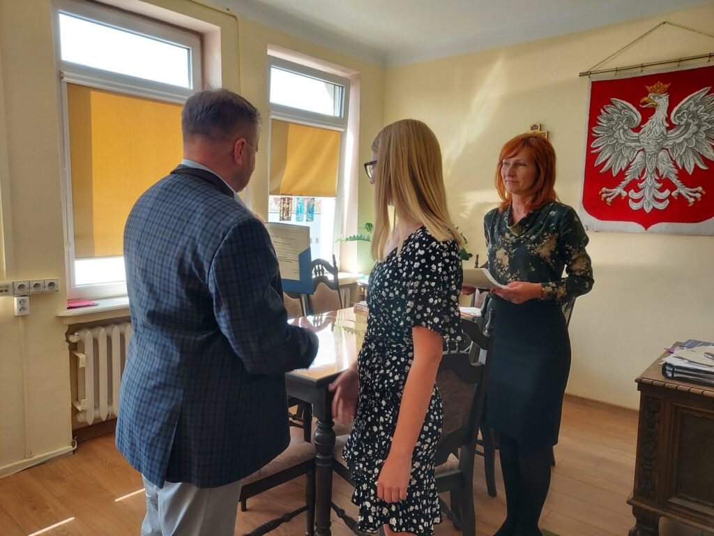 Pogratulował też pani dyrektor Annie Otwinowskiej i nauczycielom uczącym sukcesów polonistycznych, gdyż w tym roku oprócz laureata dwie uczennice otrzymały też tytuł finalisty tego konkursu.