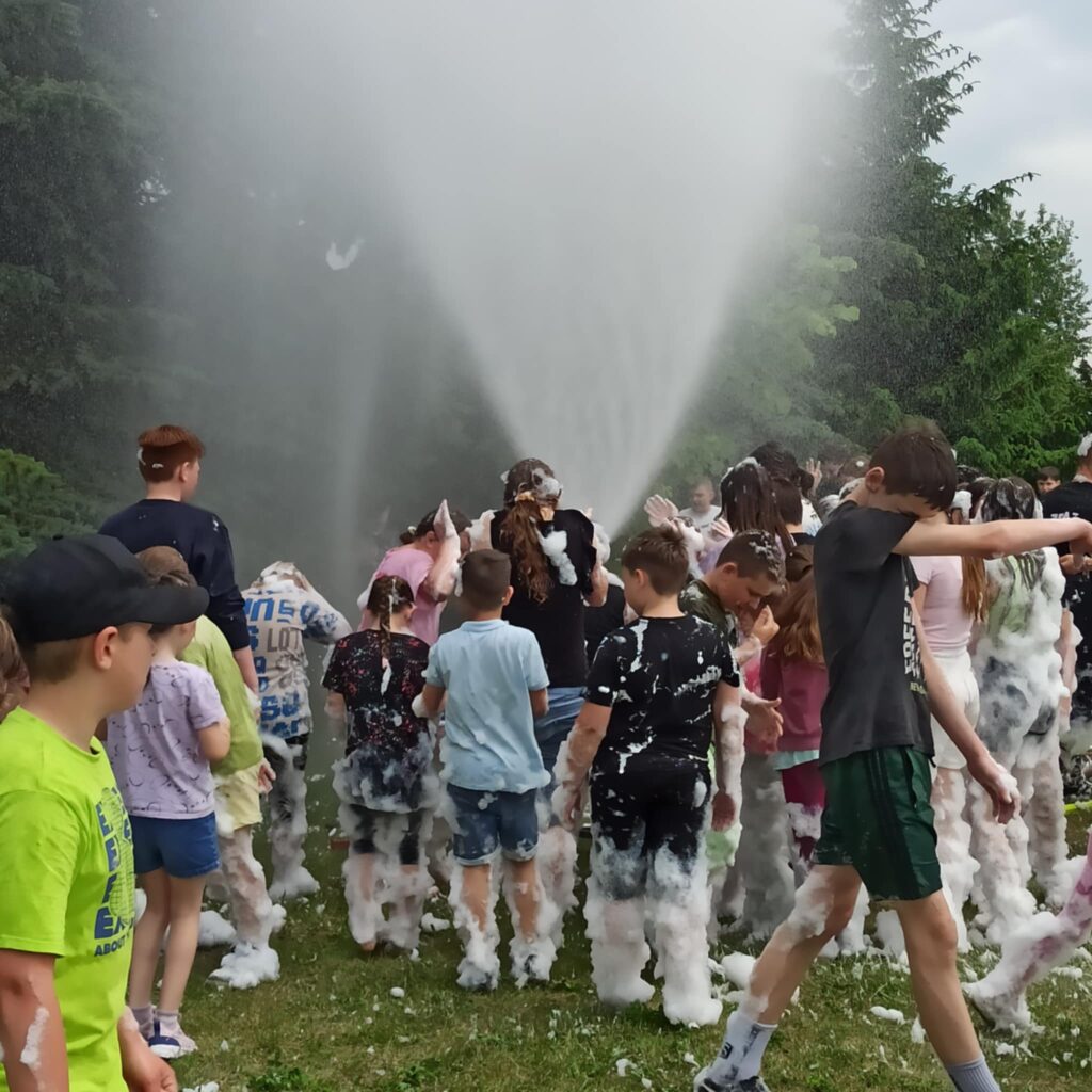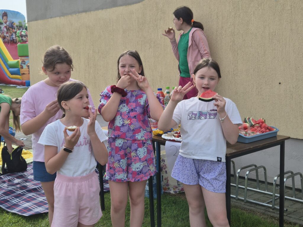 Na dzieci w tym dniu czekały również inne atrakcje: dmuchańce, piana przygotowana przez strażaków, malowanie twarzy oraz pyszne przekąski przygotowane przez rodziców uczniów.