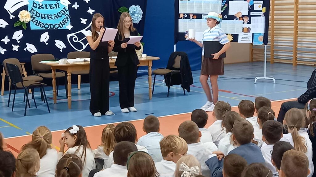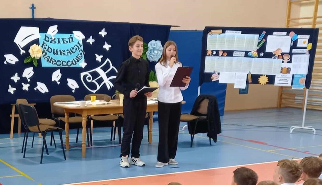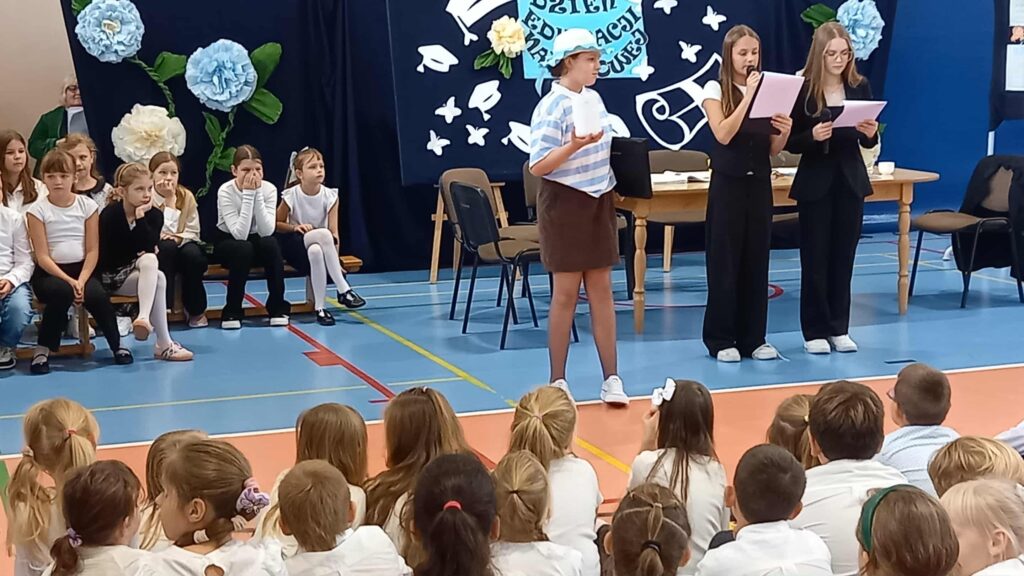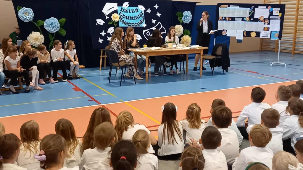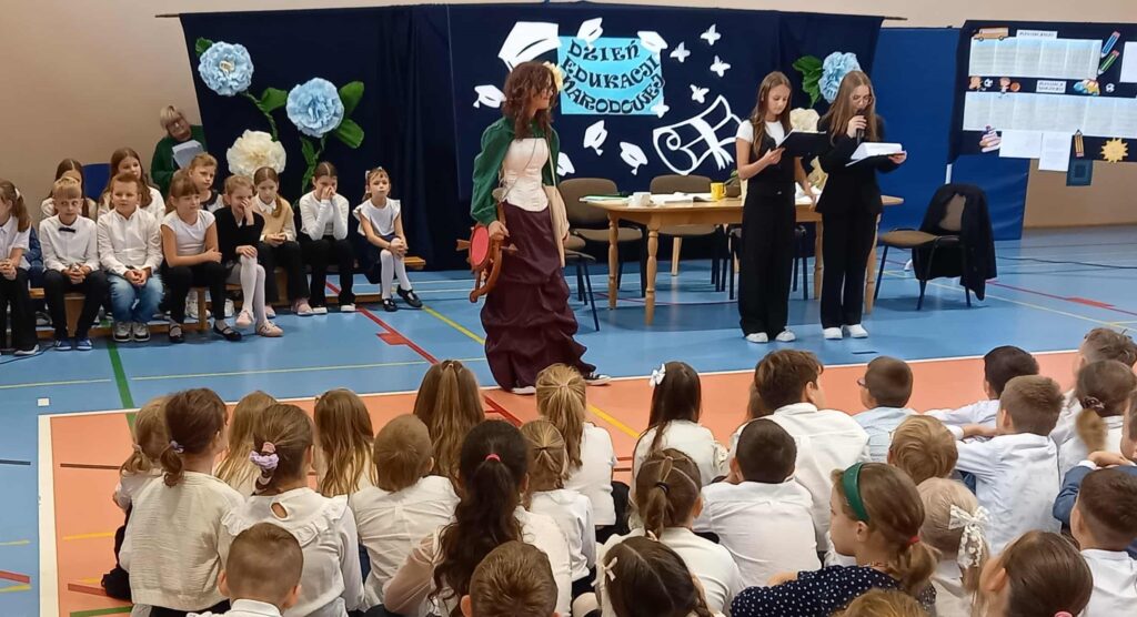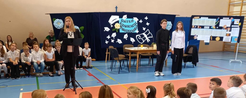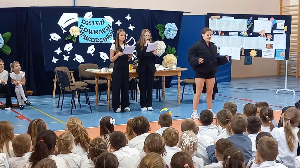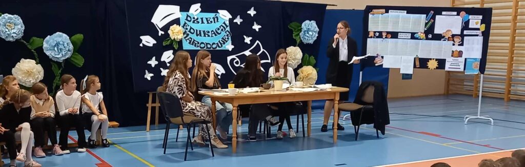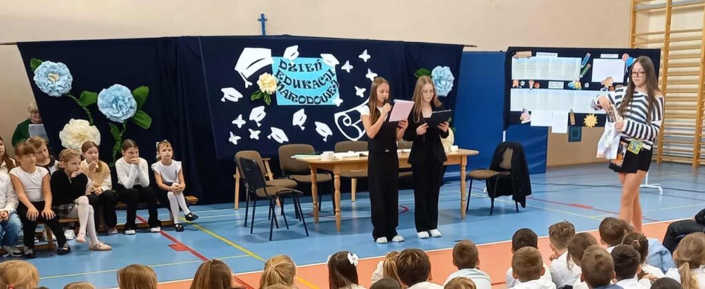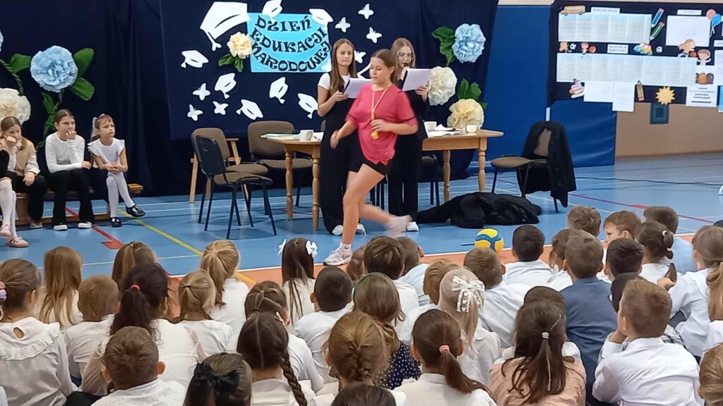 10 października, w naszej szkole, odbyła się uroczysta akademia z okazji Dnie Edukacji Narodowej. Uczniowie przygotowali pełen humoru program artystyczny, w którym zaprezentowali scenki z życia szkoły, w tym rozmowy w pokoju nauczycielskim. Nie zabrakło także pokazu mody dla nauczycieli, który wywołał wiele śmiechu i radości wśród publiczności. Była to doskonała okazja, by podziękować nauczycielom i pracownikom szkoły za ich codzienny trud, cierpliwość i zaangażowanie w wychowanie młodego pokolenia.
