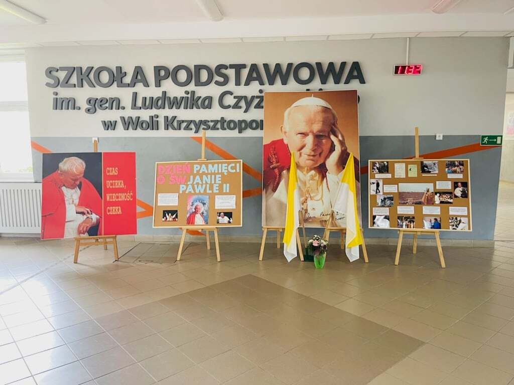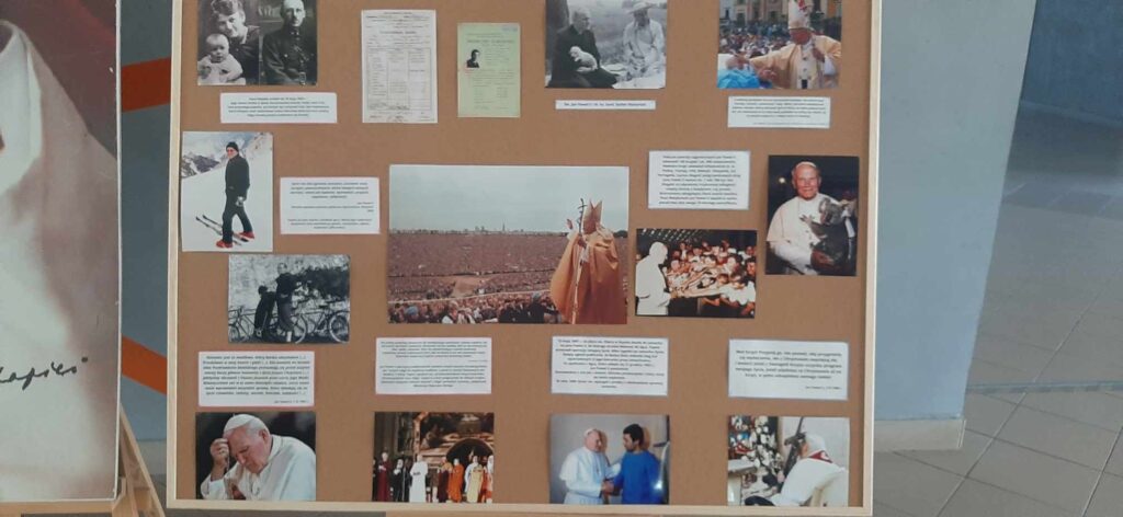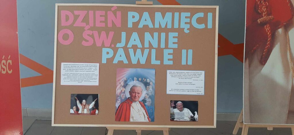22 maja obchodziliśmy w naszej szkole Dzień Pamięci o św. Janie Pawle II. Z tej okazji została przygotowana wystawa ukazująca najważniejsze momenty z życia jednego z najwybitniejszych Polaków oraz przesłanie moralne, które zostawił wiernym Ojciec święty.