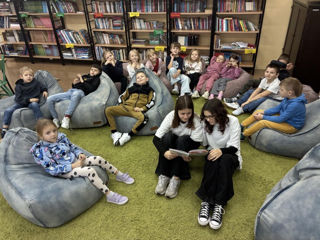 26 listopada uczennice klasy 7b od rana czytały uczniom i uczennicom klas pierwszych, drugich i trzecich. Na tapetę zostały wzięte lektury szkolne: „Niesamowite przygody dziesięciu skarpetek”, „Oto jest Kasia” i „Dziewczynka z Zapałkami”. W tym roku spotykamy się w bibliotece szkolnej w ramach Narodowego Programu Rozwoju Czytelnictwa.
