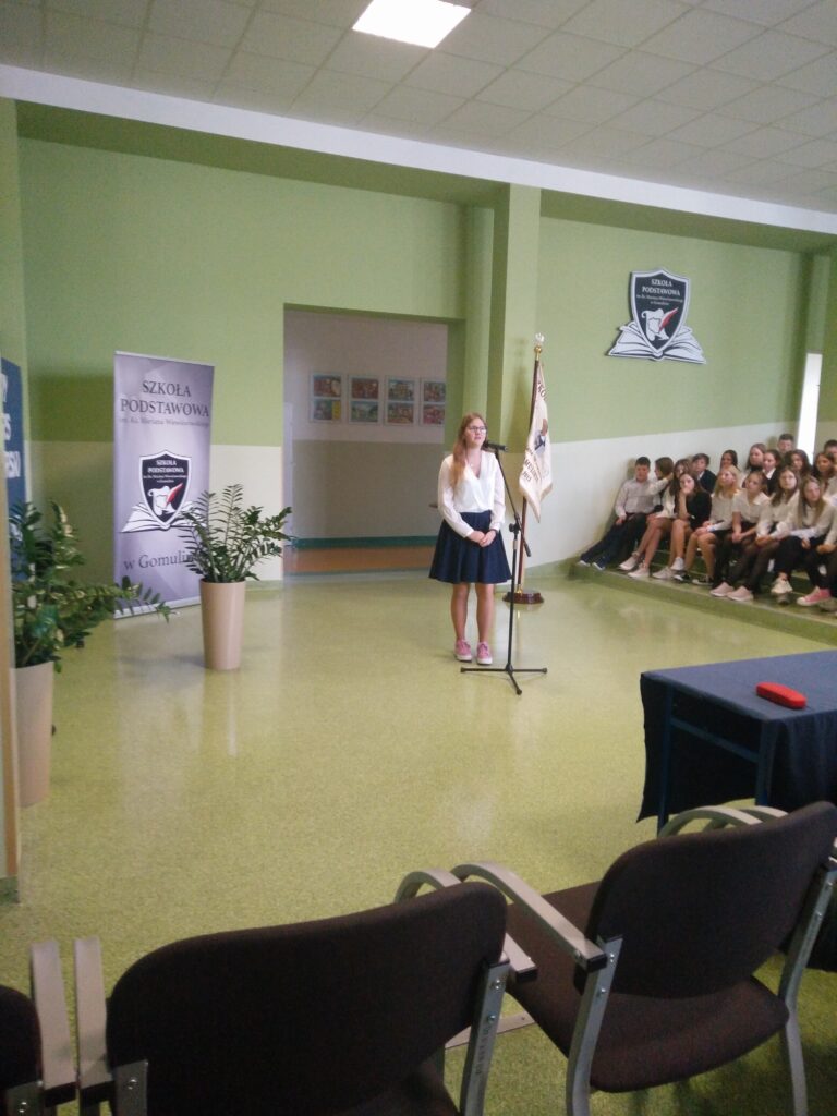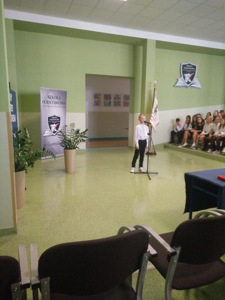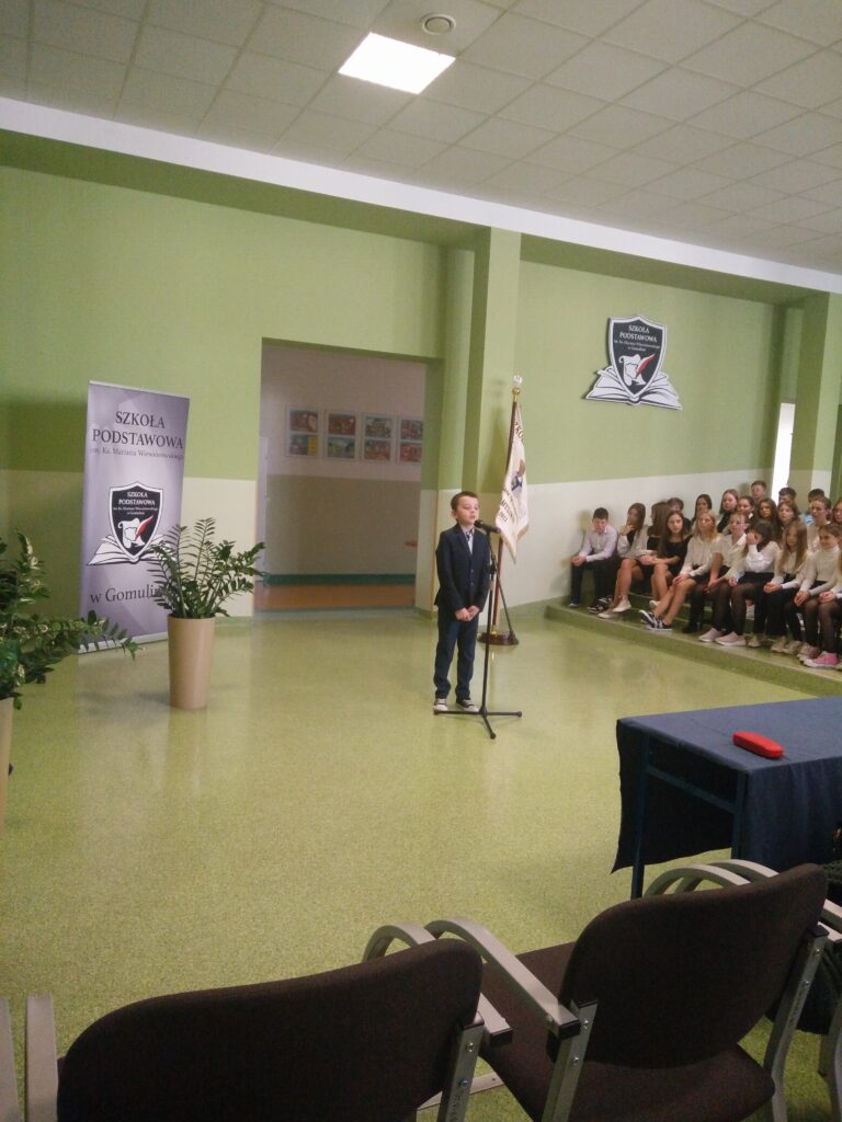 O Polsce i patriotyzmie Polaków 24 października 2023r. pięknie mówili  uczniowie szkół podstawowych z terenu Gminy Wola Krzysztoporska. To właśnie tego dnia w Szkole Podstawowej im. Ks. Mariana Wiewiórowskiego w Gomulinie odbyła się