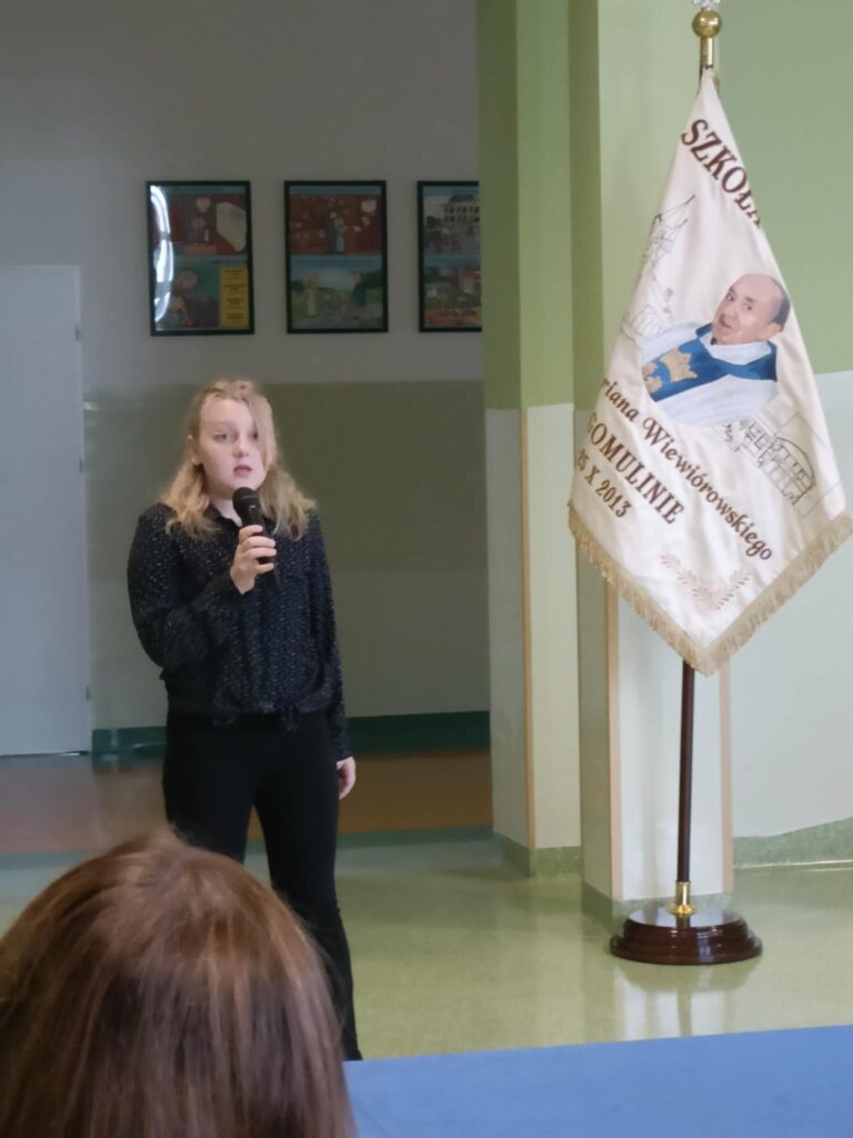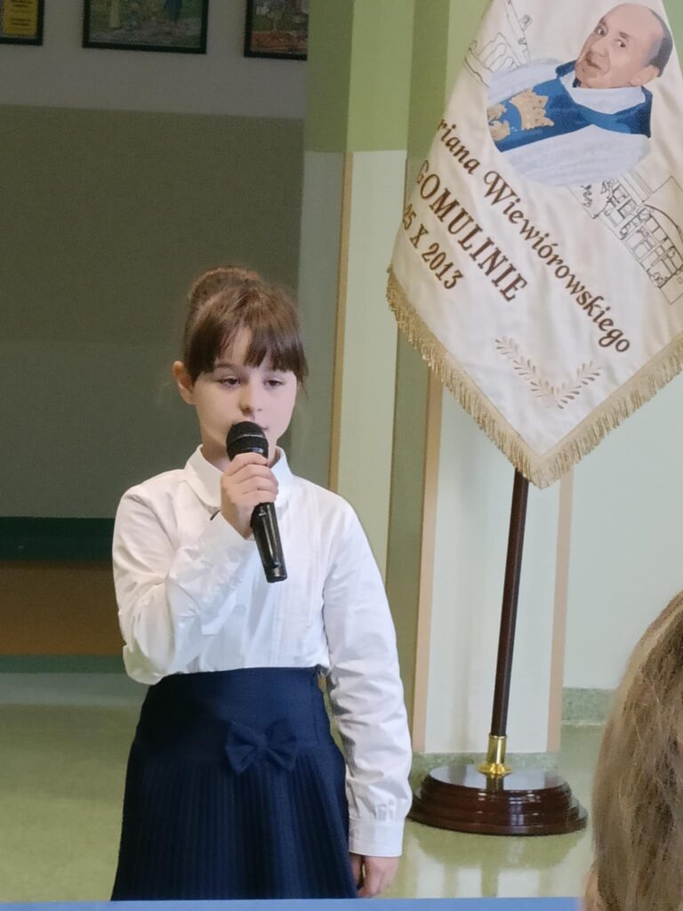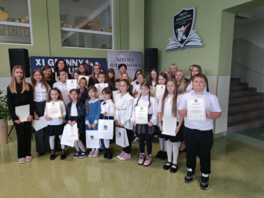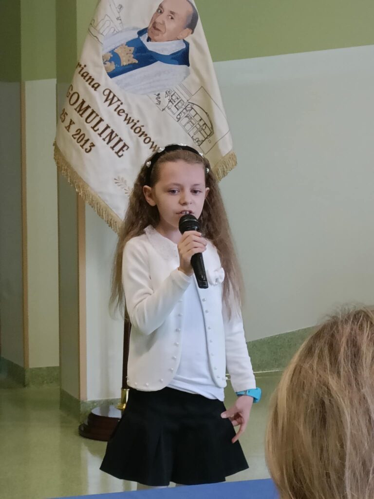 24 października uczennice i uczeń naszej szkoły wzięli udział w Gminnym Konkursie Recytatorskim Poezji Polskiej im. ks. Mariana Wiewiórowskiego. Konkurs zorganizowany został przez Szkołę Podstawową w Gomulinie. Wzięło w nim udział 24 recytatorek i recytatorów ze szkół w Gomulinie, Krzyżanowie, Parzniewicach i Woli Krzysztoporskiej. W komisji oceniającej występy zasiadły panie: Anetta Grudzień – nauczycielka języka polskiego w ZSP nr 1 w Piotrkowie Trybunalskim, Karolina Piotrkowska – główna specjalistka do spraw edukacji w Urzędzie Gminy w Woli Krzysztoporskiej oraz Joanna Filipek – kierowniczka Gminnej Biblioteki Publicznej w Woli Krzysztoporskiej. Osoby reprezentujące naszą szkołę, Kaja Kozłowska – klasa 2a, Aleksandra Marcinkowska – klasa 2b, Szymon Roksela – klasa 3b, Aleksandra Grela –klasa 4a, Maja Filipczak – klasa 6b, Maja Wiernicka, Nikola Cieślik i Weronika Jaworska – klasa 6a, do recytacji przygotowywały się pod kierunkiem pań Katarzyny Podwysockiej, Barbary Urbaniak, Danuty Motyl, Gabrieli Adryańczyk i Anny Otwinowskiej.