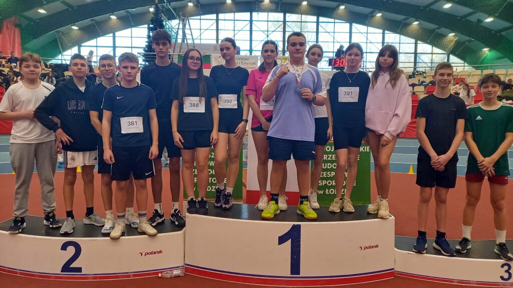 W dniu 04.12.2025r. uczniowie z naszej szkoły wzięli udział w Halowym Mikołajkowym Mityngu Lekkoatletycznym LZS dla Szkół Podstawowych, który odbył się w Spale. Rywalizowaliśmy w różnych konkurencjach lekkoatletycznych takich jak: bieg na 60m, bieg na 200m, skok w dal, pchnięcie kulą. Wszyscy do swoich prób przystąpili skoncentrowani i zmotywowani, borykając się przy tym z silnymi przeciwnikami ze szkół i klubów sportowych z całego województwa. Na wyróżnienie zasługuje Stanisław Woźniak, który w pchnięciu kulą zdobył złoty medal, Lena Masiarek w pchnięciu kulą zajęła 4 miejsce a także Oskar Babiarczyk, który w skoku w dal zajął 5 miejsce a Filip Filipczak 6 miejsce. Wszystkim serdecznie gratulujemy.