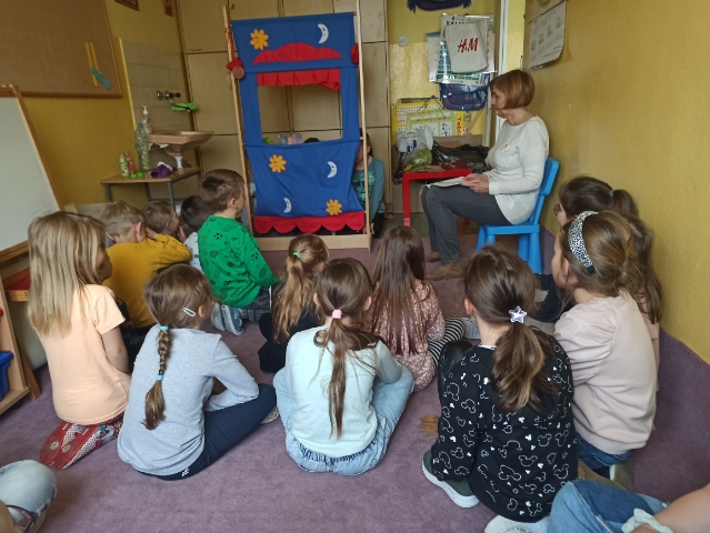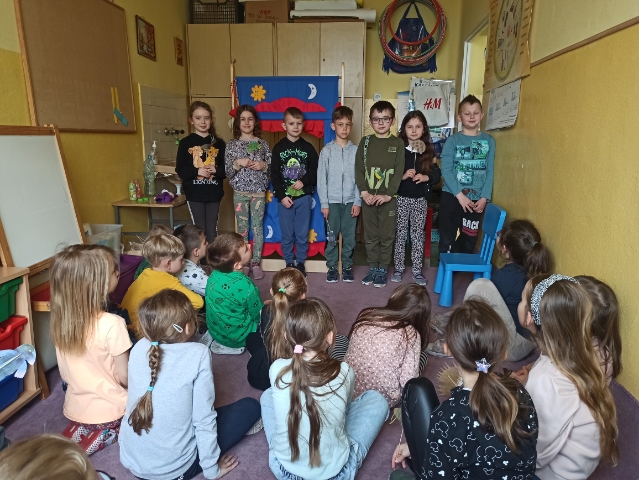 Uczniowie klasy 2b zaprosili młodszych kolegów na przedstawienie „Kto zjadł sałatę?” Występy zostały nagrodzone gromkimi brawami.