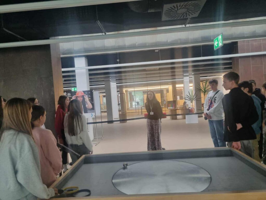 Tegoroczny Dzień Chłopaka uczniowie klas VIIIa i VIIb wraz ze swoimi wychowawczyniami – Marleną Danielak i Gabrielą Adryańczyk spędzili w piotrkowskiej Mediatece. W ramach wycieczki młodzież zwiedziła nie tylko bibliotekę, ale przede wszystkim strefę: odkrywania, wyobraźni i aktywności – małe centrum nauki: intrygujące, pobudzające wyobraźnię i zachęcające do eksperymentowania. SOWA w piotrkowskiej Mediatece 800-lecia jest pierwszą w Polsce, pilotażową wystawą, będącą częścią wspólnego przedsięwzięcia Ministerstwa Edukacji i Nauki oraz Centrum Nauki Kopernik w Warszawie. SOWA to strefa zabawy i eksperymentów. W czasie jej zwiedzania można było m.in. zmierzyć się z siłą grawitacji, stworzyć portret, sprawdzić, czy nasza twarz jest symetryczna, tworzyć ukryte obrazy poznawać krzywe zwierciadła, jak działa pamięć ultrakrótkotrwała, a nawet projektować zbiornik wodny i ,,wywoływać” deszcz. Natomiast zwiedzając tę wystawę, dzieci nigdzie nie znalazły napisu „NIE DOTYKAĆ”, gdyż wszystko mogli dotknąć, sprawdzić, przekręcić – aby uruchomić eksponat, aby coś zaprojektować i zbudować. Nasi uczniowie mieli też zajęcia w kolorowym laboratorium, uczestniczyli więc w lekcji, fizyki, matematyki i projektowania – budowali maszynę chemika. Natomiast w Majsterni i tworzyli i uruchamiali własne wynalazki. Wycieczka ta była świetną okazją by: miło spędzić czas, odkrywać naukę w praktyce, rozwinąć swoją pasję, ale przede wszystkim poznawać urok i cel przedmiotów ścisłych. Zapewne nabytą wiedzę i umiejętności wykorzystają we własnej szkole, w czasie realizacji zajęć dotyczących realizacji Rządowego Programu Laboratoria Przyszłości, którego celem jest budowanie kompetencji kreatywnych i technicznych wśród uczniów. Każdemu polecamy tego typu wycieczkę! Mediateka to ciekawe miejsce, w którym każdy znajdzie coś dla siebie.