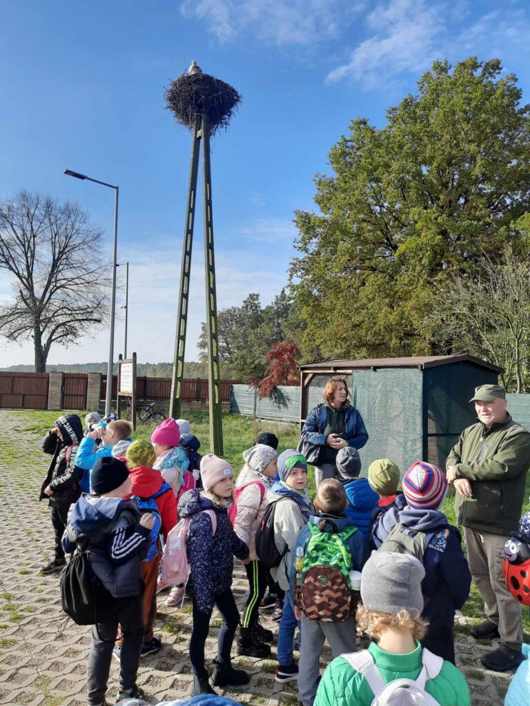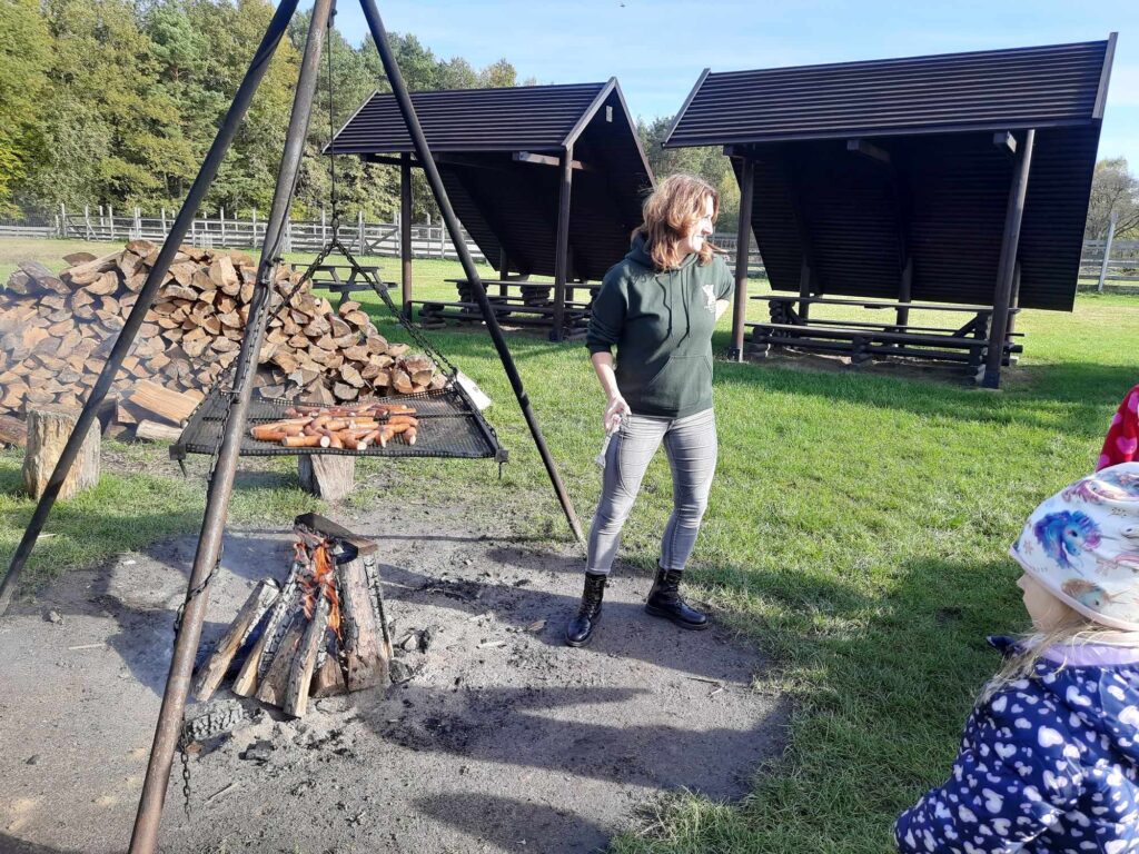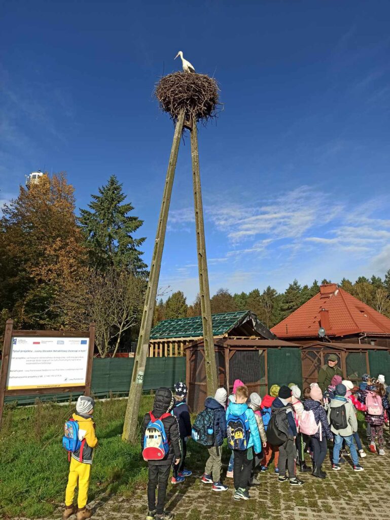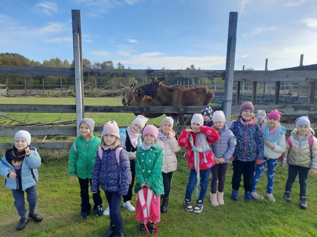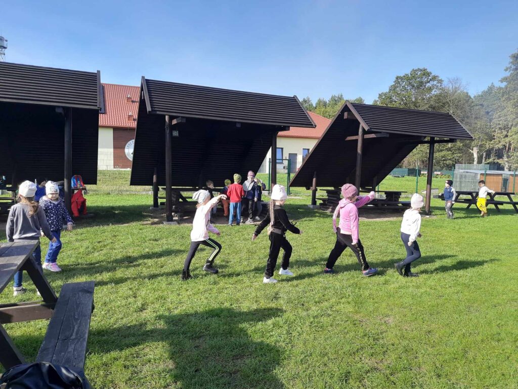 24 października 2023 r. dzieci oddziałów przedszkolnych 0a i 0b z wychowawcami uczestniczyły w wycieczce do Leśnej Osady Edukacyjnej w Kole. Leśna Osada Edukacyjna posiada status Ośrodka Rehabilitacji Zwierząt, który prowadzi leśniczy Paweł Kowalski. Głównym celem wycieczki było poznanie lasu i jego mieszkańców. Pan leśniczy w ciekawy sposób opowiadał o zwierzętach tam mieszkających. Poznaliśmy popularne gatunki zwierząt leśnych oraz min. tj. sójki, gawrony, bociany, myszołowy oraz lisy, dziki, jelenie łosie oraz ich zwyczaje. Ostatnim punktem wycieczki było spotkanie przy ognisku. W wolnym czasie dzieci swobodnie bawiły się na świeżym powietrzu oraz mogły z bliska obserwować zabawy kóz. Dzieci z wycieczki wróciły bardzo zadowolone. Pogłębiły i poszerzyły swoją wiedzę przyrodniczą. Poznały w jaki sposób należy zachowywać się w kontakcie z dzikimi zwierzętami oraz jak reagować w przypadku zaatakowania przez dzika. Żywo i emocjonalnie reagowały na nowe wiadomości, ponieważ realnego kontaktu z przyrodą nie zastąpi się najlepszymi nawet fotografiami czy filmami.