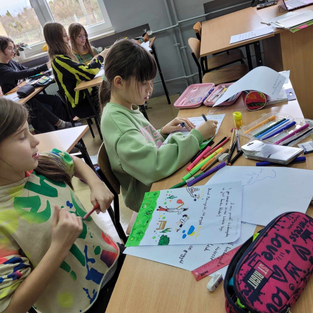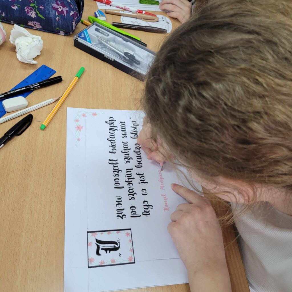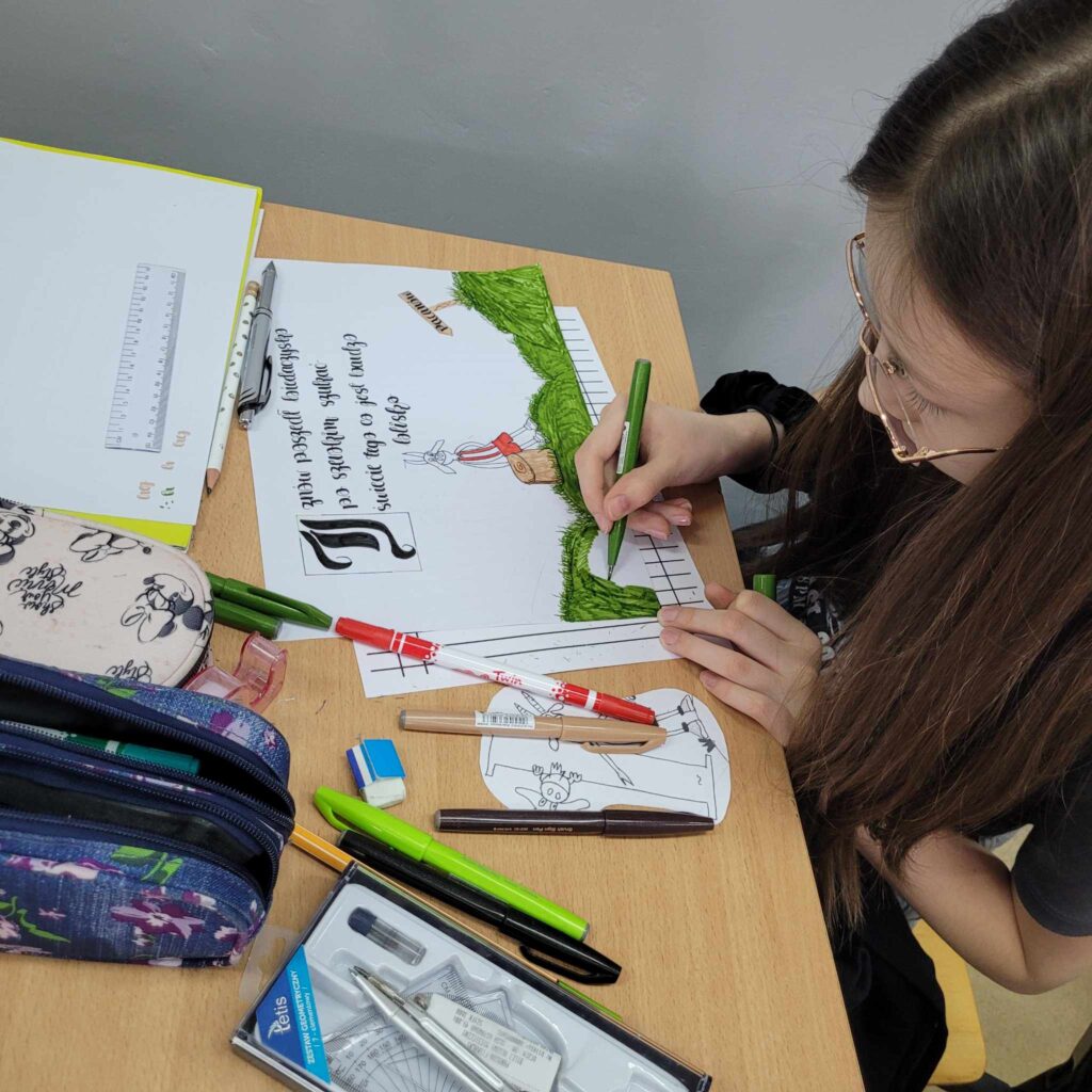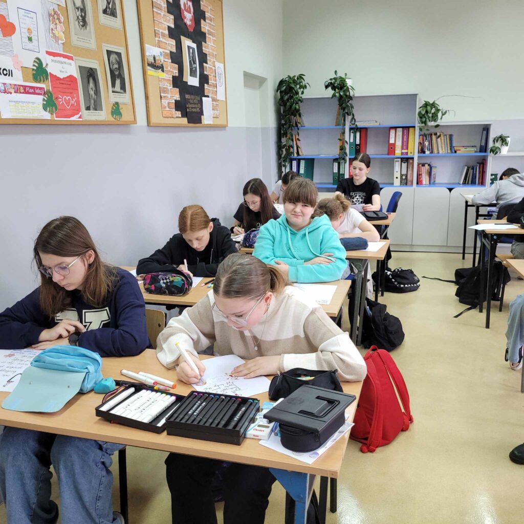 ·        na lekcjach z wychowawcą uczniowie wykonali plakaty promujące poprawność językową, głośno czytali fragmenty utworów polskich pisarzy, ćwicząc tym samym dykcję i intonację głosu