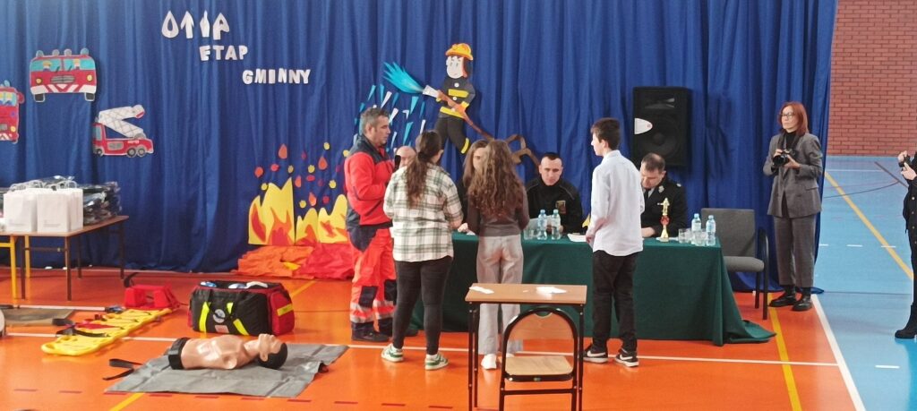 i wychowania fizycznego realizując program profilaktyczny ,,Ratownik Junior”. W ramach przygotowań do turnieju uczniowie zgłębiali widzę z opiekunem Marleną Danielak, uczestniczyli również w spotkaniach zorganizowanym przez Ochotniczą Straż Pożarną