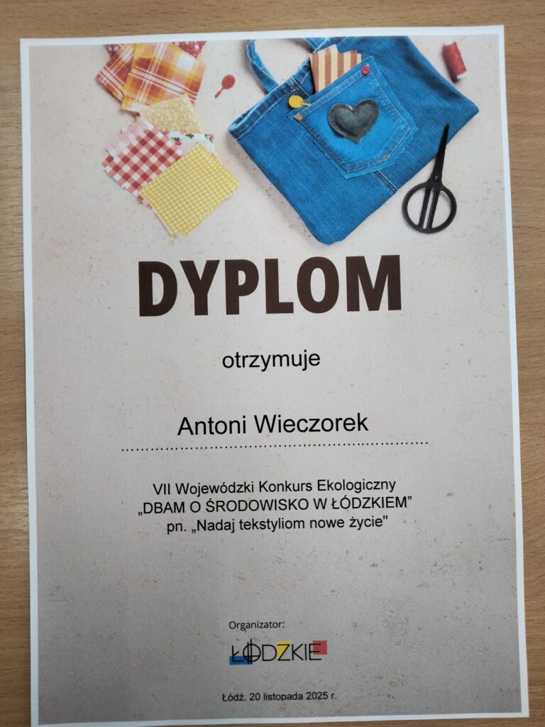 Antoni Wieczorek, Zofia Wieczorek oraz Jakub Depczyński otrzymali wyróżnienia w VII edycji Wojewódzkiego Konkursu Ekologicznego „Dbam o środowisko w Łódzkiem”, „Nadaj tekstyliom nowe życie”. Konkurs polegał na wykonaniu plakatu ukazującego działania lub rozwiązania przyczyniające się się do dbania o środowisko i wskazanie na ograniczenie wytwarzania odpadów tekstylnych przez wykorzystanie ich w codziennym życiu.