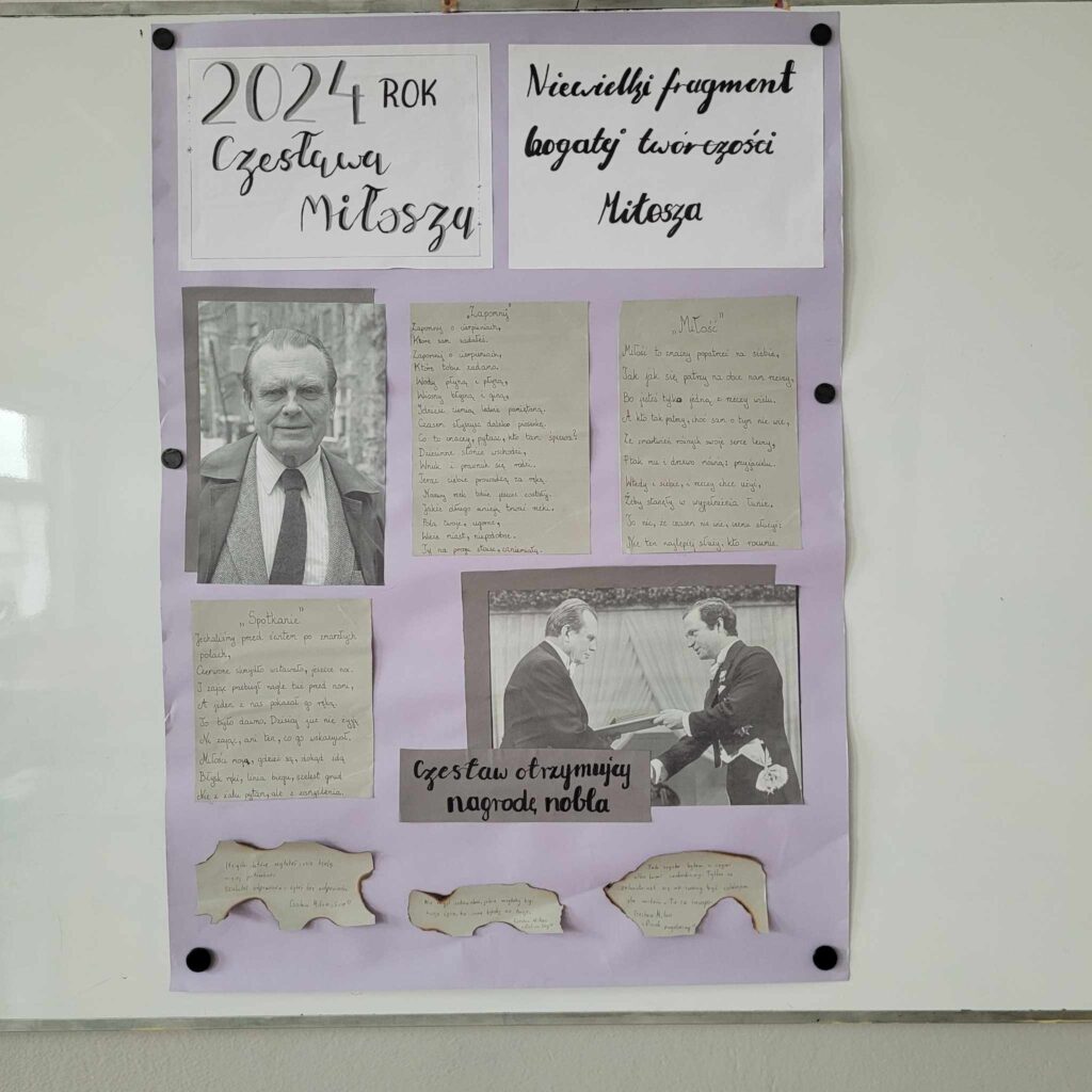 W ramach zadań „Miłosz w szkole” uczniowie Szkoły Podstawowej w Woli Krzysztoporskiej zapoznali się z biografią oraz twórczością poety oraz dokonali przekładu intersemiotycznego wybranych tekstów lirycznych.