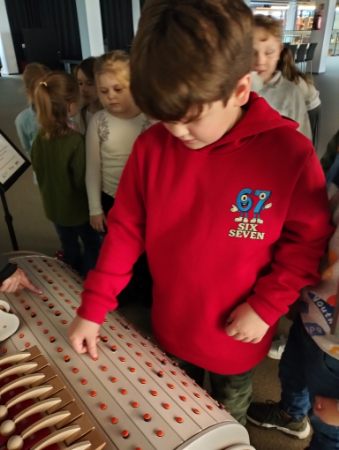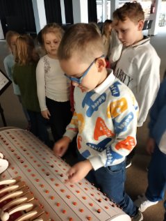 KLASY 1a i 1b w MEDIATECE w Piotrkowie Tryb. Klasy 1a i 1b wraz z wychowawcami p. Karoliną Bernacką i p. Danutą Motyl w dniu 12.12.2025 r odwiedziły Mediatekę w Piotrkowie Trybunalskim. Uczniowie uczestniczyli w lekcji bibliotecznej, gdzie poprzez zabawę uczyli się jak cenić książki i czytanie, co jest kluczowe dla ich rozwoju osobistego i społecznego. Następnie udali się do Innowacyjnego Centrum Nauki i Techniki- SOWA. Dzieci miały możliwość rozwijania swojej aktywności i wyobraźni a także eksperymentowania korzystając z eksponatów, które ukazywały zjawiska związane z różnymi dziedzinami nauki, takie jak ruch, światło, czy procesy biologiczne. Znalazły się wśród nich między innymi kolorowe cienie, rysowanie w lustrze, czy zadanie- usyp mapę. Dzieci miały również możliwość tworzenia różnego rodzaju kompozycji dźwiękowych czyli kreatywnego eksperymentowania, dzięki stałej ekspozycji „Projektowanie muzyki”. Uczniowie pełni wrażeń i nowych doświadczeń wrócili do szkoły.