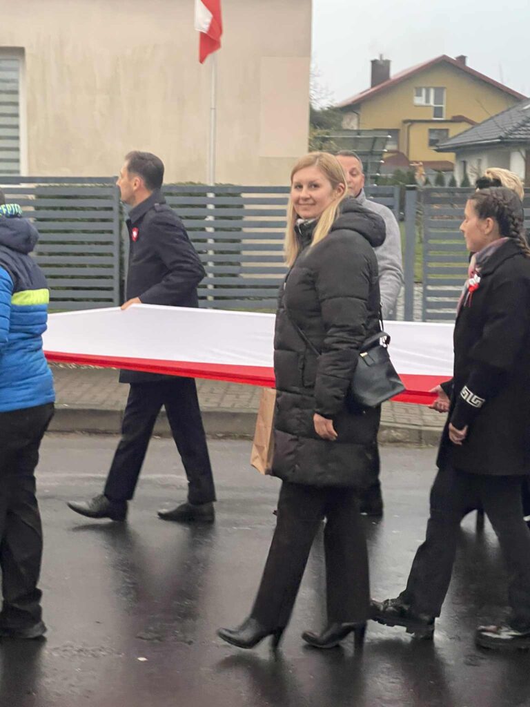 Pocztowi Sztandarowemu towarzyszyły Dyrektor szkoły – pani Adrianna Grela oraz opiekunki – pani Katarzyna Stawiak i pani Marlena Danielak. Obecność delegacji szkolnej podkreśliła patriotyczny charakter uroczystości i była wyrazem szacunku dla historii oraz tradycji narodowych.