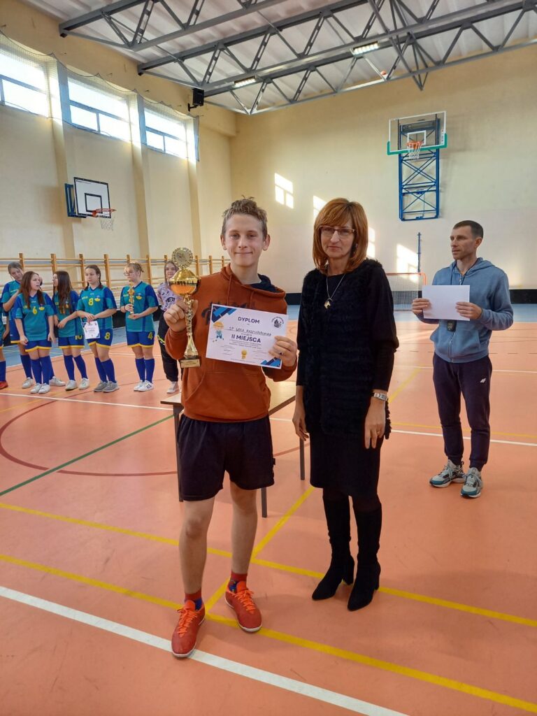 W dniu 22.11.2022r. w naszej szkole odbył się finał powiatowy dziewcząt i chłopców w ramach Igrzysk Młodzieży Szkolnej w Unihokeju. Nasza szkoła wystawiła dwie reprezentacje po wcześniej wygranych eliminacjach gminnych. Na Turniej zgłosiły się reprezentacje dziewcząt z Sulejowa, Bab i Łęk Szlacheckich. Wśród chłopców zgłosiły się Rozprza, Sulejów, Łęki Szlacheckie, Baby. Rozgrywki prowadzone były w grupach. Nasze dziewczyny pierwszy mecz grały z Babami i przegrały 1:0 później grały o 3 miejsce i tym razem musiały uznać wyższość Łęk Szlacheckich przegrywając ten mecz 3:1 i ostatecznie zajęły 4 miejsce. Dużo lepiej wypadli chłopcy, którzy w pierwszym meczu pokonali Rozprzę 3:0, później zremisowali z Babami 1:1 zajmując 1 miejsce w swojej grupie dzięki czemu awansowali do finału, w którym ulegli Łękom Szlacheckim 1:0 i zajęli bardzo dobre 2 miejsce. Po turnieju był czas na podsumowanie, w którym Pani Dyrektor Anna Otwinowska podziękowała wszystkim trenerom i młodzieży uczestniczącej za sportową rywalizację i wręczyła pamiątkowe dyplomy i puchary.