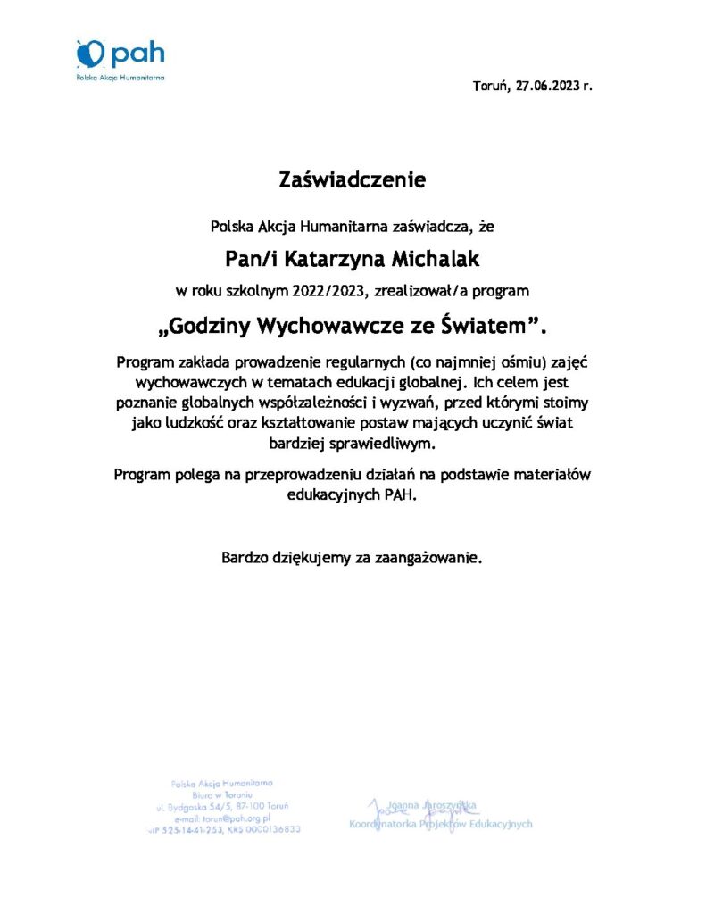 Program Polskiej Akcji Humanitarnej PAH „Godziny ze Światem”