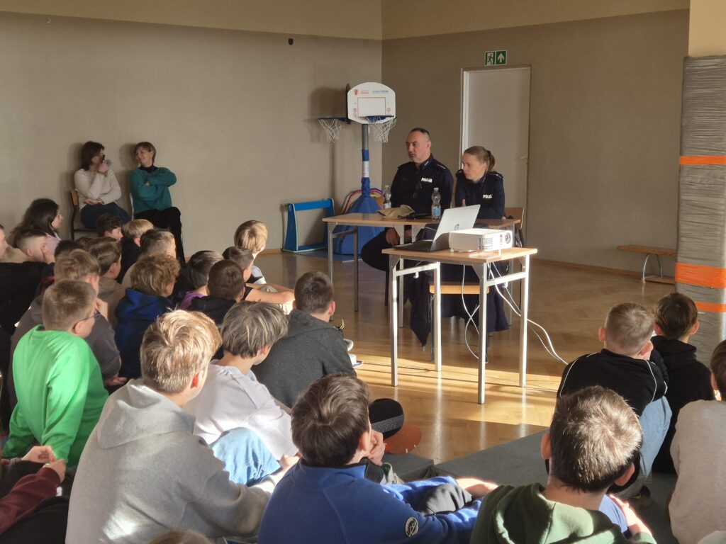 ,,Bezpieczeństwo uczniów na drodze oraz w sytuacjach nietypowych zdarzających się w życiu codziennym, przemoc i agresja występująca w środowisku szkolnym oraz Internecie i jej konsekwencje prawne” to tematy spotkań, które omawiane były z uczniami naszej szkoły w dniu 13 listopada 2025 r.