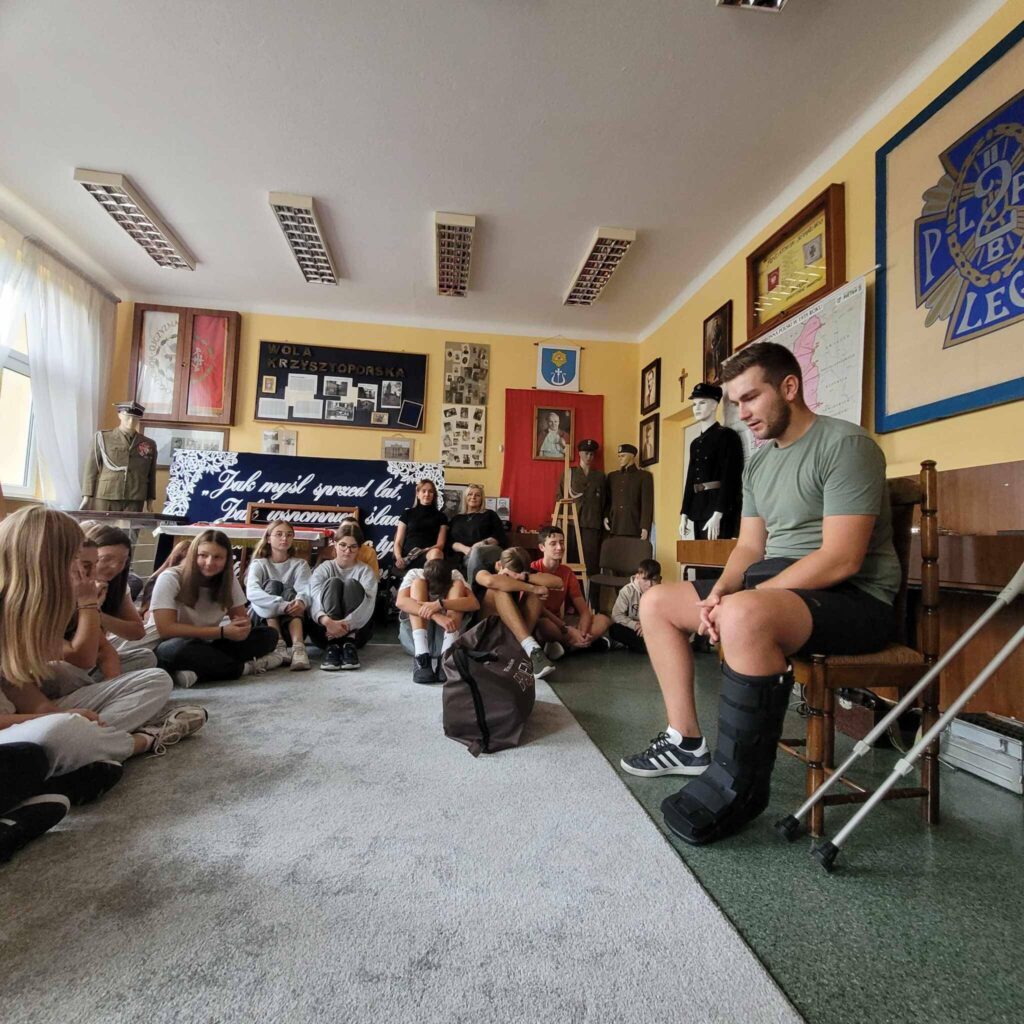 Na spotkaniu ratownik udzielał instruktażu oraz zademonstrował tok postępowania podczas udzielania pierwszej pomocy w nagłych wypadkach. Pan Grzegorz uświadomił uczniom na czym polega jego praca oraz jak należy zachować się w nagłych wypadkach do momentu pojawienia się fachowej pomocy medycznej. Uświadomił uczniom iż tzw. ”złote minuty” ratują życie poszkodowanego. Przypomniał również uczniom ważne telefony alarmowe.