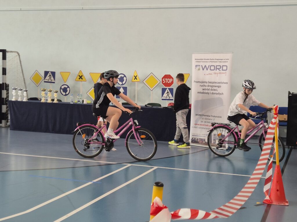 Nasi uczniowie musieli wykazać się wiedzą teoretyczną z zakresu przepisów ruchu drogowego. Część praktyczna turnieju to sprawdzenie techniki jazdy zawodników, która polega na przejechaniu wyznaczonego toru przeszkód.