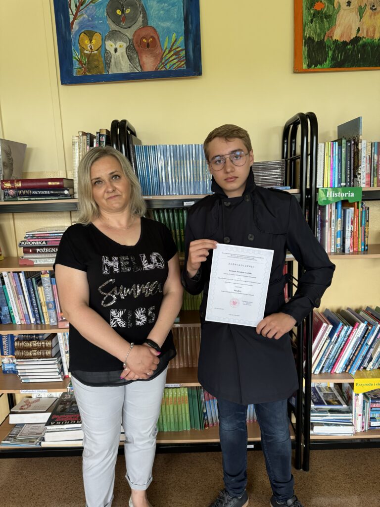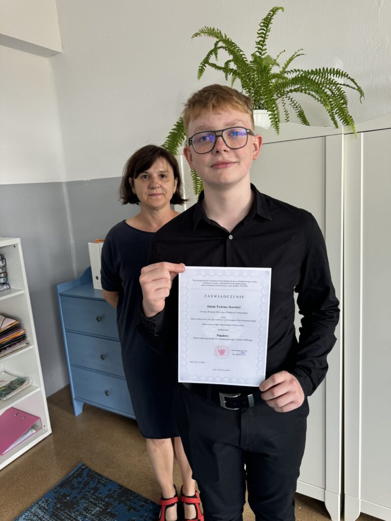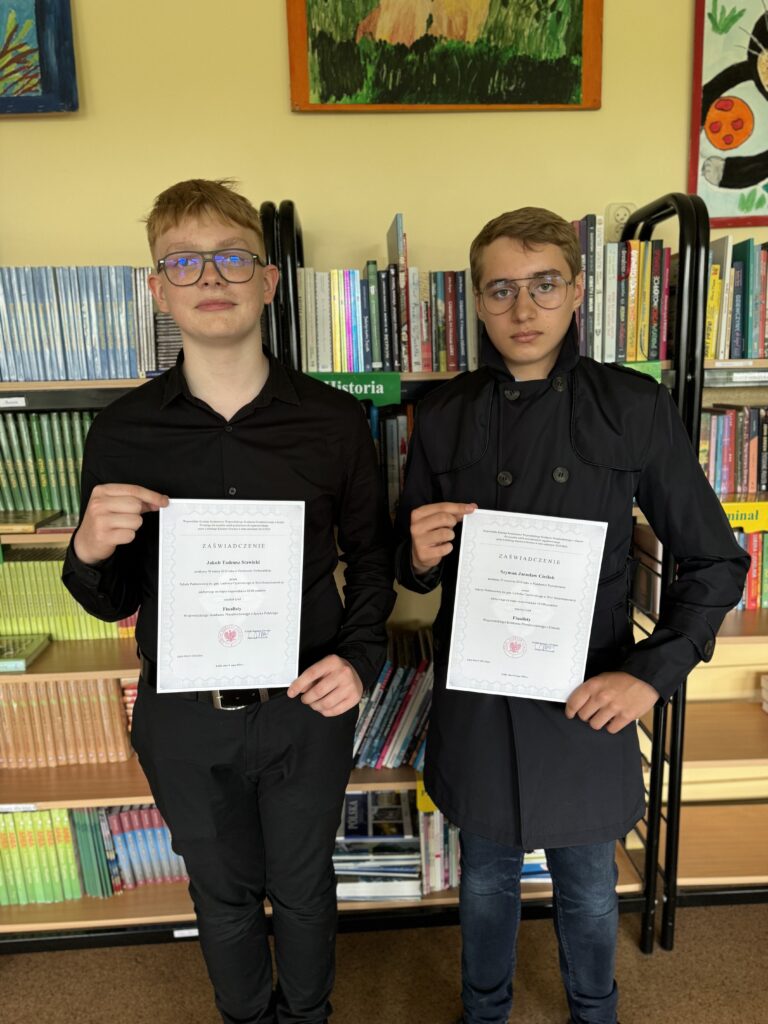 Jakub Stawicki został finalistą Wojewódzkiego Konkursu Przedmiotowego z Języka Polskiego, a Szymon Cieślak finalistą Wojewódzkiego Konkursu Przedmiotowego z Historii.