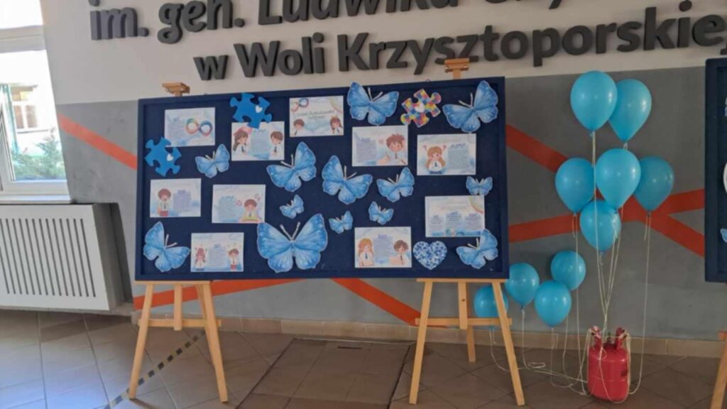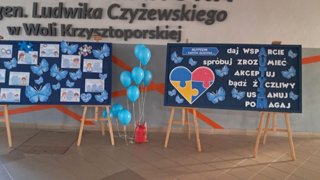 2 kwietnia cała społeczność szkolna wraz z wychowawcami aktywnie uczestniczyła w obchodach Dnia Świadomości Autyzmu. Uczniowie w tym dniu przyszli do szkoły ubrani na niebiesko. W każdej klasie została wyświetlona prezentacja pt: ,,Autyzm. Poznaj by zrozumieć”, a także film edukacyjny ,,ZOBACZ MNIE. Nie wybrałem sobie autyzmu, jestem wyjątkowy jak Ty”. Celem tych działań było podniesienie świadomości dzieci i młodzieży, budowanie zrozumienia i akceptacji dla osób, które zmagają się z tym zaburzeniem na co dzień. Na korytarzu została wystawiona gazetka o tematyce autyzmu, na drzwiach wszystkich klas pojawiły się piękne niebieskie motyle oraz plakaty wykonane przez uczniów naszej szkoły. Uczniowie klas VIII przystąpili do ankiety ,,Moja świadomość autyzmu”. Ostatnim punktem obchodów tego wyjątkowego dnia, było wyjście na plac szkoły, gdzie najmłodsi uczniowie wypuścili niebieskie balony. W ten sposób daliśmy znak społeczeństwu, że rozumiemy, akceptujemy i jednoczymy się z osobami ze spektrum autyzmu. Wspólnie możemy tworzyć przestrzeń otwartą na różnorodność i włączenie, w której każdy czuje się akceptowany i ceniony.