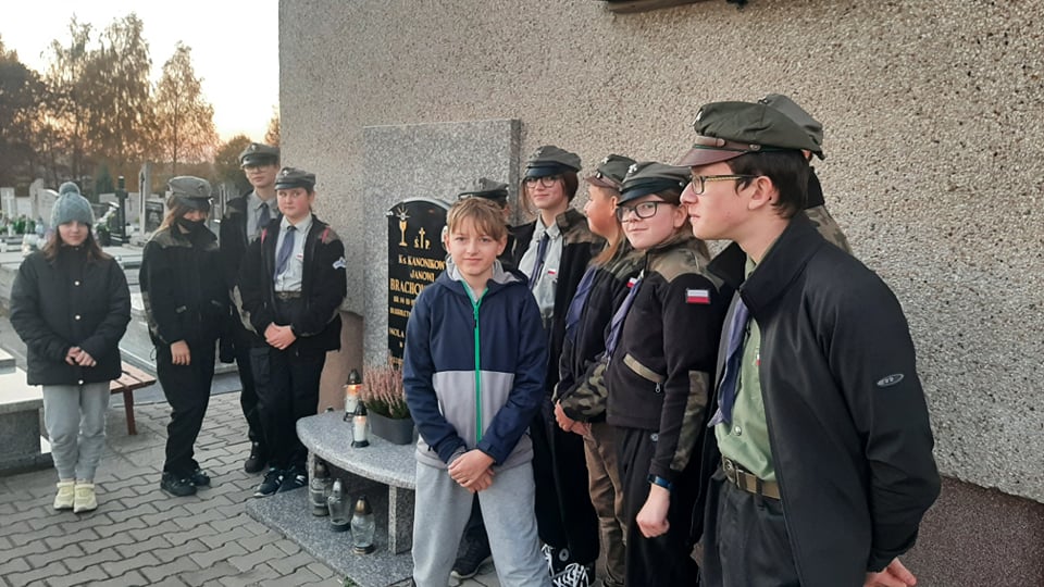 -Sprzątanie grobów oraz żołnierskich oraz pomników przez Harcerzy z 8 Drużyny Harcerskiej oraz pomników przez Zuchy z 8 Gromady Zuchowej.