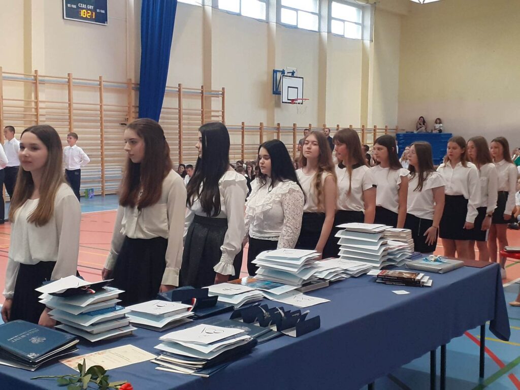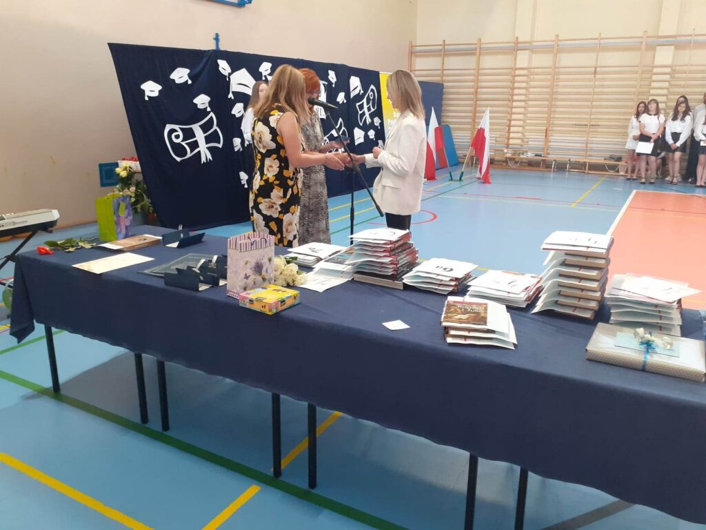 23 czerwca zakończyliśmy kolejny rok szkolny. Zostały wręczone nagrody, podziękowania, listy gratulacyjne. Był to rok pracowity, obfitujący w wiele sukcesów, czas trudnych wyzwań, ale i radości. Dla niektórych był to ostatni dzień w murach naszej placówki. Wychowawczynie: p. Joanna Sala, p. Ewa Berner – Zawada, p. Agnieszka Warzyńska pożegnały ósme klasy. My pożegnaliśmy również p. Joannę Salę, która przechodzi na zasłużoną emeryturę oraz ks. Rafała Środę, który kończy posługę w parafii Wola Krzysztoporska. Tym, z którymi musimy się pożegnać życzymy wiele sukcesów, a wszystkim dobrze spędzonych wakacji.