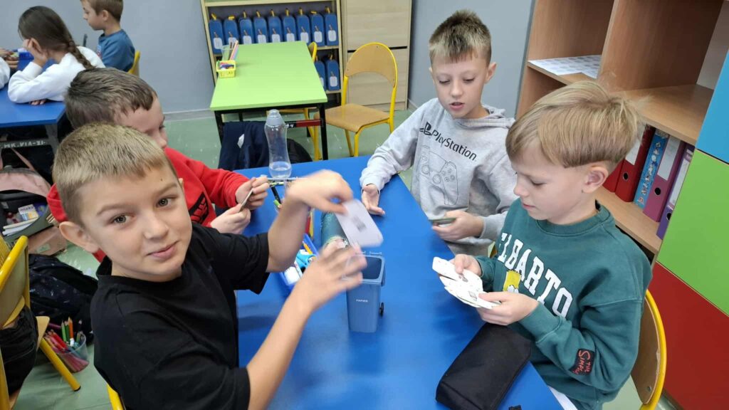 Dziś klasy trzecie uczestniczyły w warsztatach EKO-REGION. Zajęcia dotyczyły właściwej segregacji odpadów i budowały nawyk dbania o otoczenie. Praca w grupach sprzyjała rozwojowi poczucia odpowiedzialności za planetę.