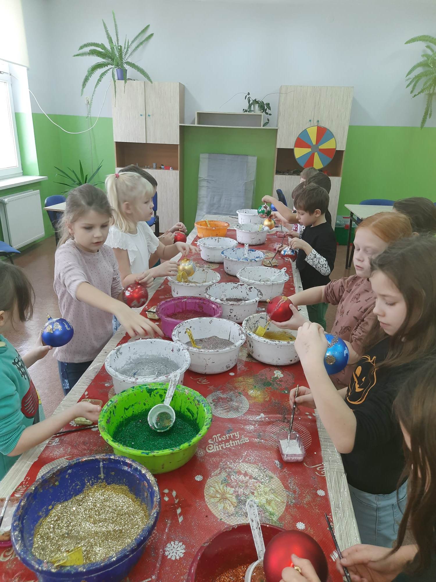 W zajęciach wzięły udział klasy Ia, Ib, IIa, IIb. Warsztaty te przybliżyły dzieciom proces wytwarzania bombek choinkowych oraz ich dekorowania. Dzieci miały możliwość własnoręcznego pomalowania i udekorowania bombek, które otrzymały do domu. Warsztaty były ciekawym urozmaiceniem zajęć szkolnych i świetna zabawą.
