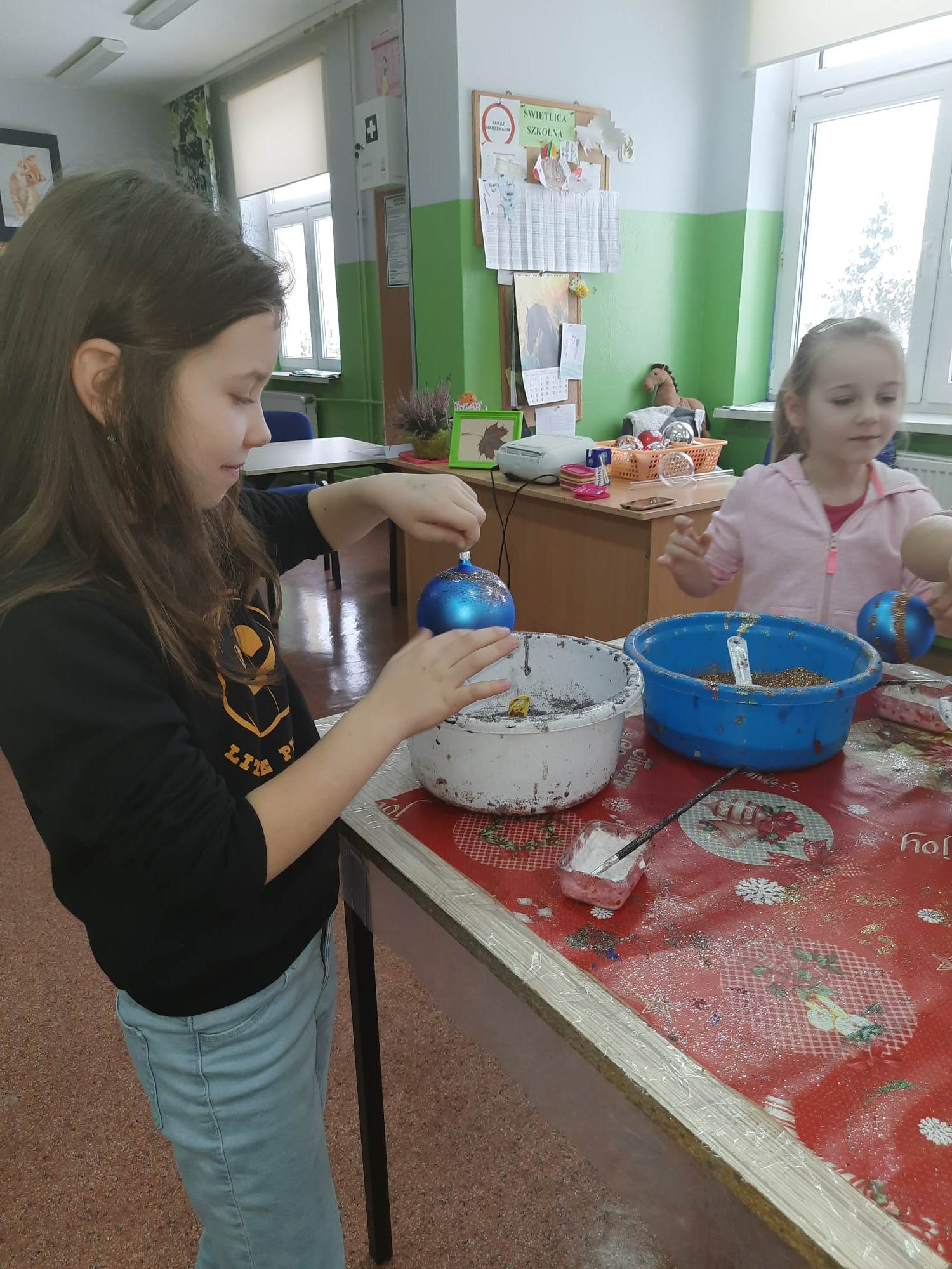 24 listopada w naszej szkole odbyły się warsztaty plastyczne „Malowanie szklanych bombek świątecznych”.