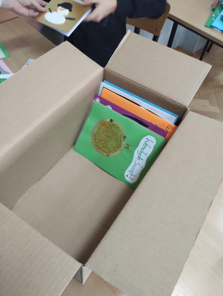 Maleńki wkład uczniów naszej szkoły w Weekend Cudów. 13-14 grudnia to czas podsumowania akcji Szlachetna Paczka, działający w Niewidzialna Ręka Piotrków Trybunalski w tym właśnie czasie obdarowali potrzebujących zebranymi prezentami. W naszym imieniu kartki świąteczne dla darczyńców i obdarowanych, przygotowane przez uczniów naszej szkoły, przekazała, wraz z mamą, Lena Krupa, uczennica klasy 2 a i zuch 8 Gromady Zuchowej Zwierzaki z Leśnej Paki. Dziękujemy za tę możliwość i już obiecujemy wsparcie w przyszłym roku.