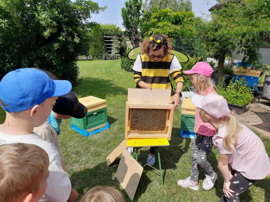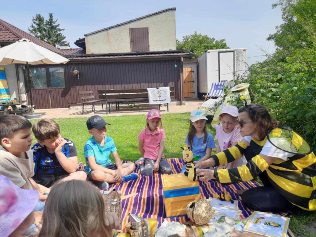 Dzieci z naszych oddziałów przedszkolnych miały niezwykłą okazję poznać z bliska życie pszczół i pracę pszczelarza. Pobyt w pasiece był nie tylko doskonałą zabawą, ale też cenną lekcją o przyrodzie i znaczeniu pszczół w naszym ekosystemie.
