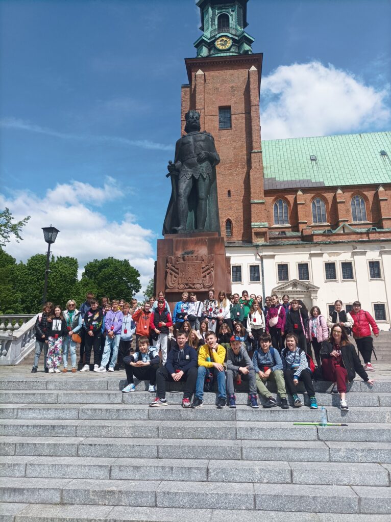 18 maja 2023 r. uczniowie klasy 5 a, 6 a i 6 b pod opieką nauczycieli Marleny Danielak, Ewy Berner-Zawady, Emila Paszty i Katarzyny Stawiak wybrali się na wycieczkę do Gniezna i Muzeum Archeologicznego w Biskupinie. Celem wycieczki było poznanie miejsc i zabytków związanych z początkami państwa polskiego, zainteresowanie i zaciekawienie uczniów historią Polski, zdobywanie wiedzy historycznej przez obserwację i doświadczanie. Atrakcje turystyczne, piękna pogoda i dobre humory w klimacie urodzinowym dwóch uczestników wycieczki pozwoliły wesoło i ciekawie spędzić ten dzień….