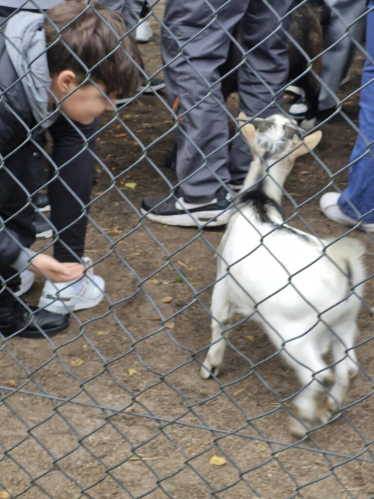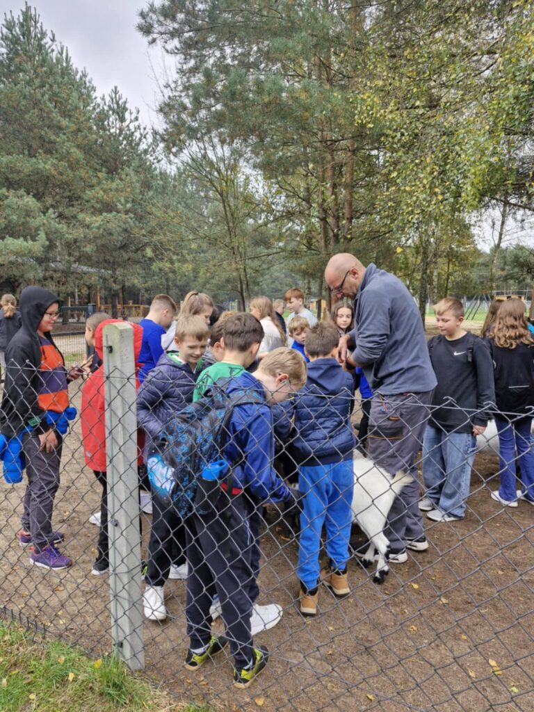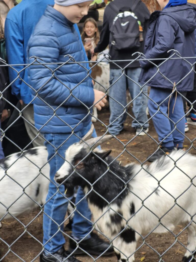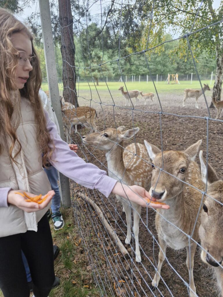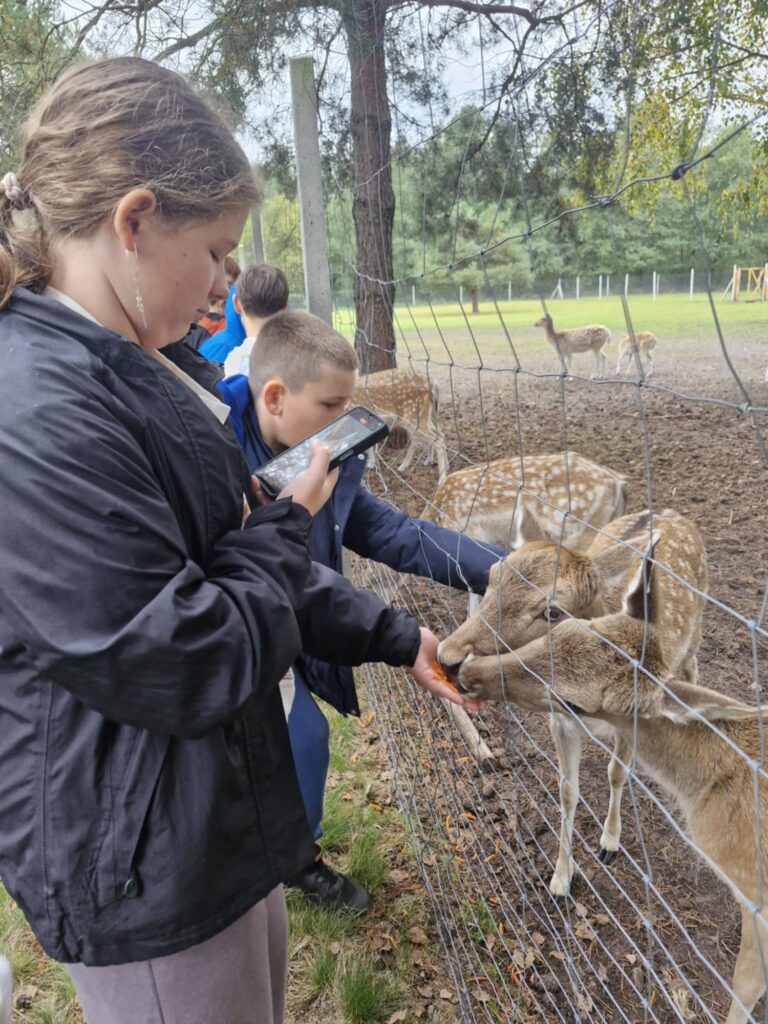 z nich mogli karmić i dotykać, co zrobiło ogromne wrażenie. Po spacerze uczestnicy udali się na ogromny plac zabaw, gdzie mogli zjeżdżać na tyrolce, grać w piłkę czy nadal karmić zwierzęta. Kolejną atrakcją było ognisko i pieczone kiełbaski, które zostały skonsumowane