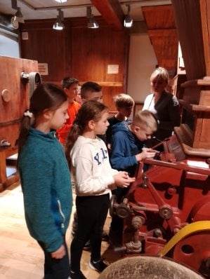 17 października uczniowie klas 2a, 3a oraz 3b wraz z opiekunami: p. Danutą Motyl, p. Iwoną Biegarczyk, p. Emilią Chęcińską udali się do Żarek do Muzeum Dawnych Rzemiosł. Dzieci odkrywały tajemnice szewstwa, bednarstwa, kołodziejstwa, piekarstwa i młynarstwa. Opowieść o dawnych technikach wykonywania tych zawodów połączona została ze współczesnymi zabawami multimedialnymi. W etnopracowni każdy mógł wykonać zabawkę z siana, a w Przystani Leśników miał miejsce interaktywny warsztat kulinarny. Wszyscy mogli również przygotować i skonsumować pizzę.