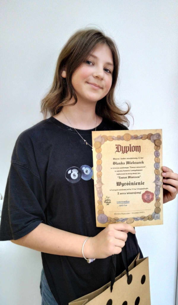 Uczennice klasy Va zostały nagrodzone w konkursie plastycznym pn.”Zostań Mincerzem” zorganizowanym przez Muzeum w Piotrkowie Trybunalskim. Ich zadaniem było zaprojektowanie monety lub banknotu, które mogłyby funkcjonować jako środek płatniczy.